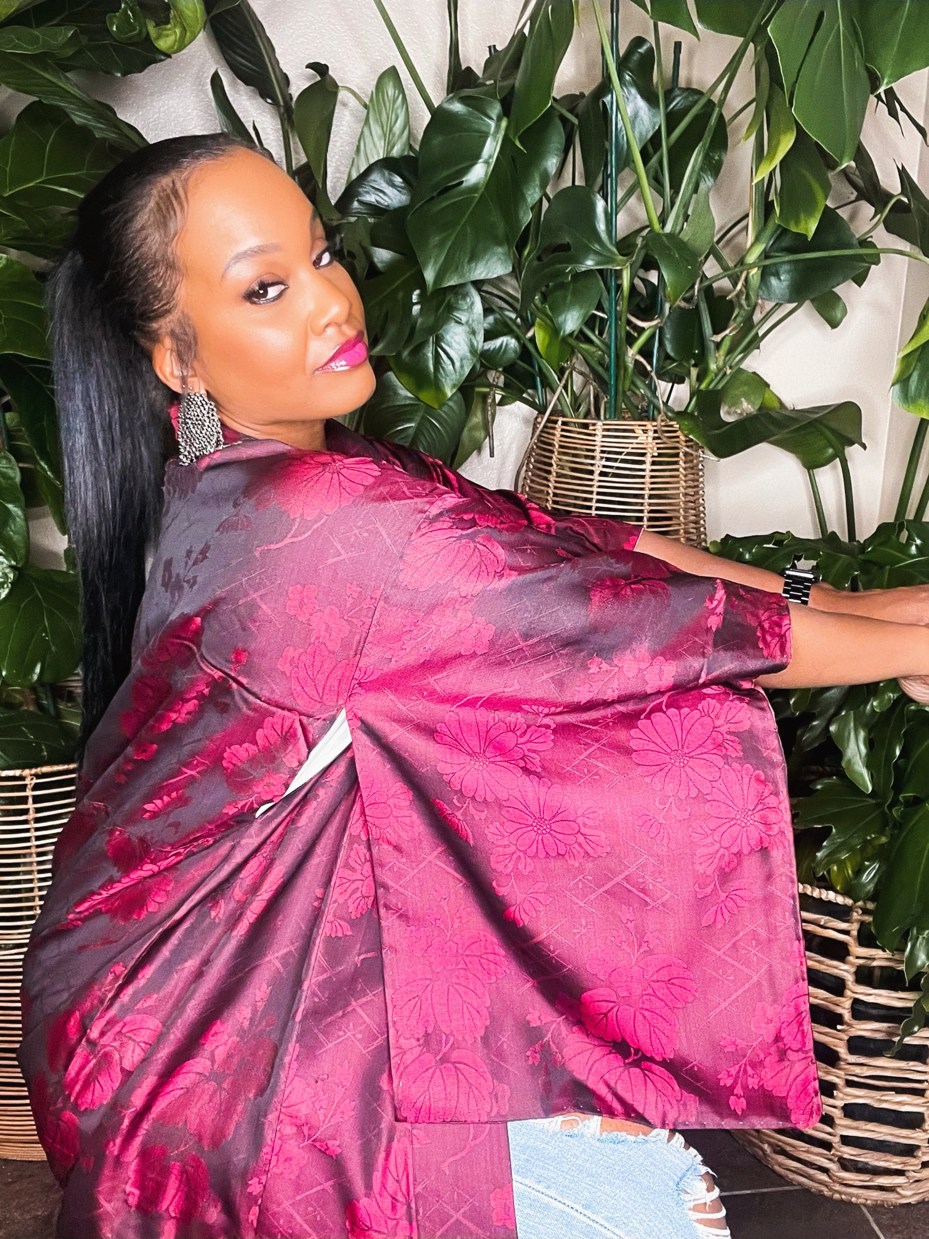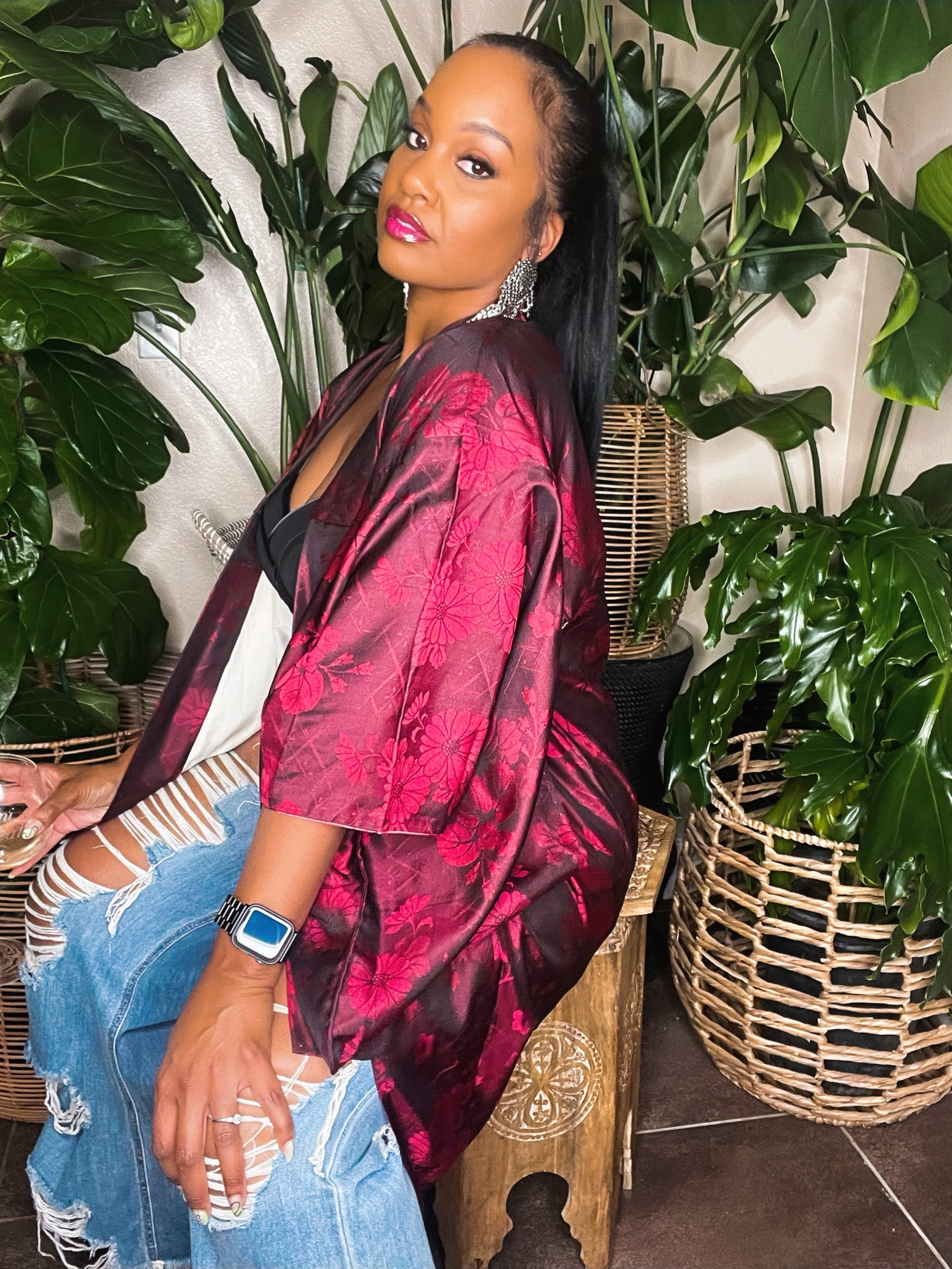 Insanely beautiful and a unique color of red and pink with hints of black . This beauty is perfect for going out and being the center of attention. very feminine. This beauty is in great condition.
