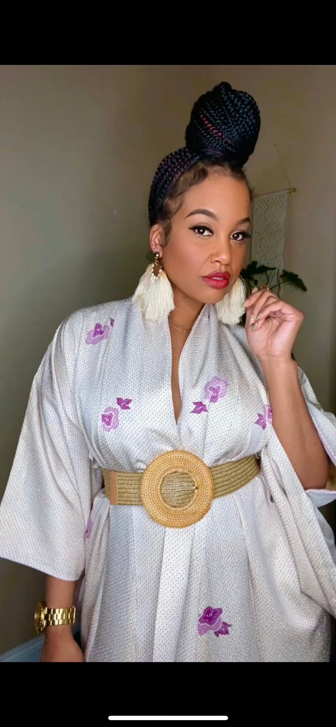 This belt has a lot of stretch and perfect for spring/summer to add a different vibe for your kimono .