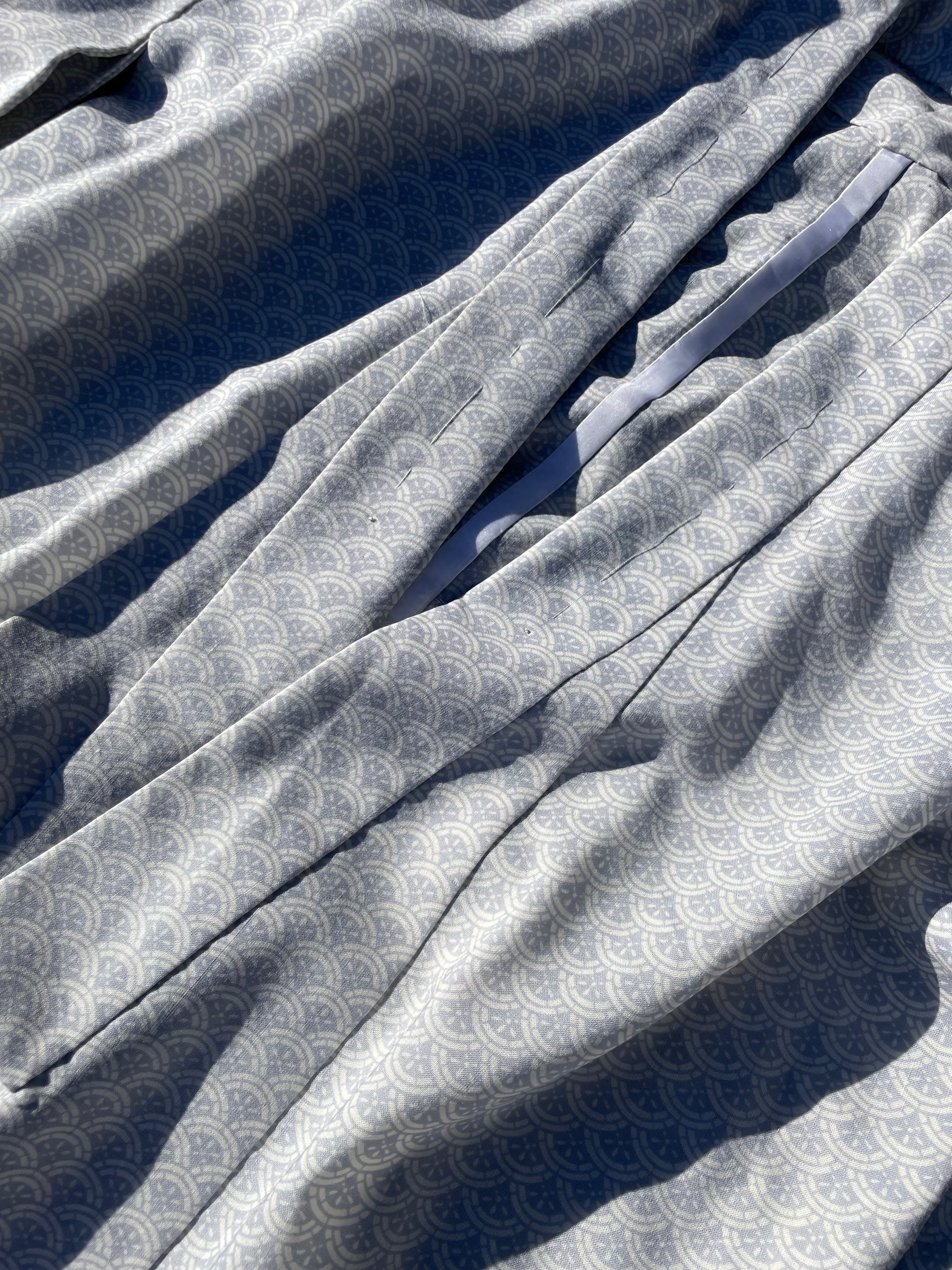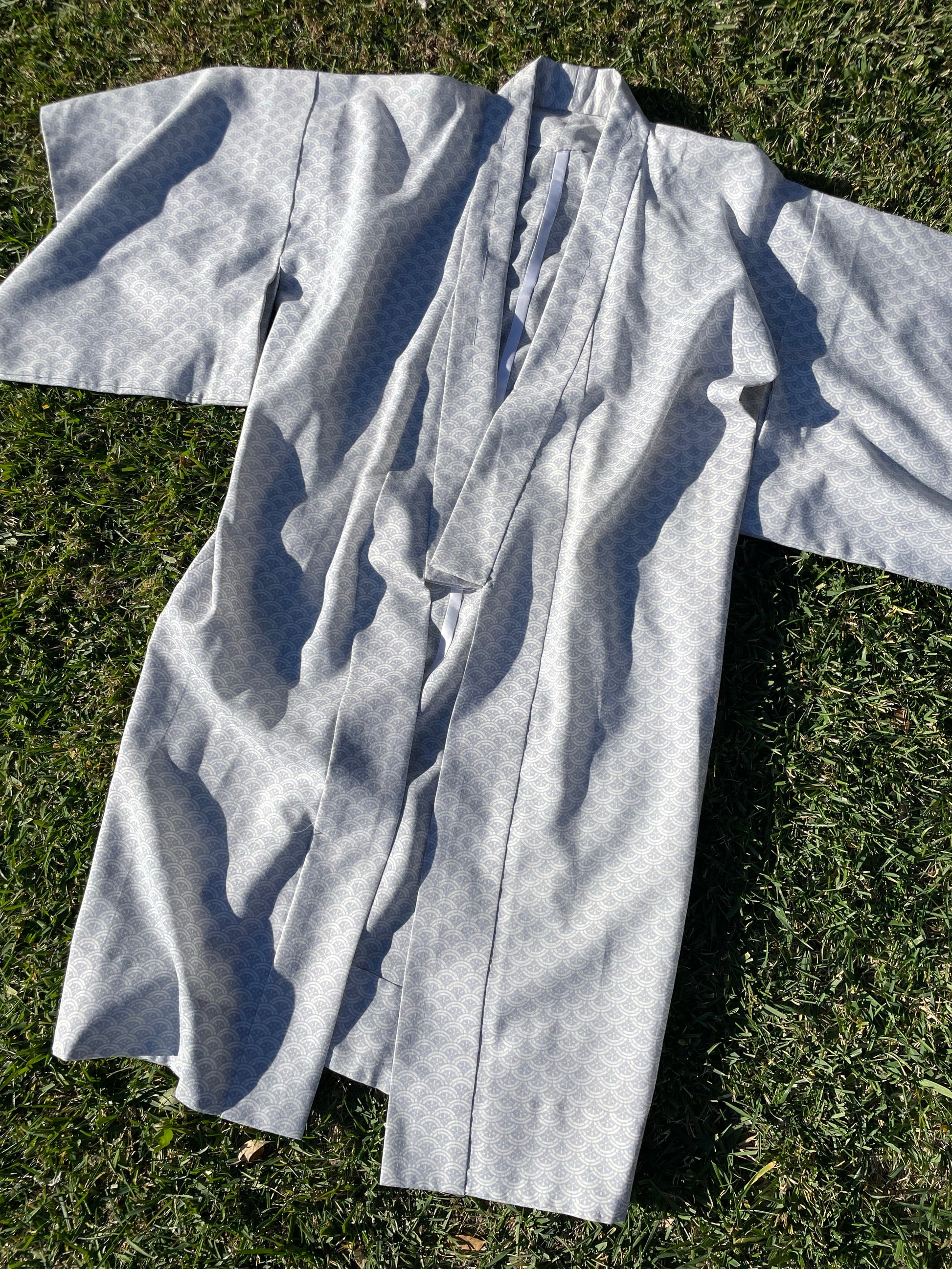 This Kimono is very sheer and is a gorgeous slate blue color. She is in great condition.