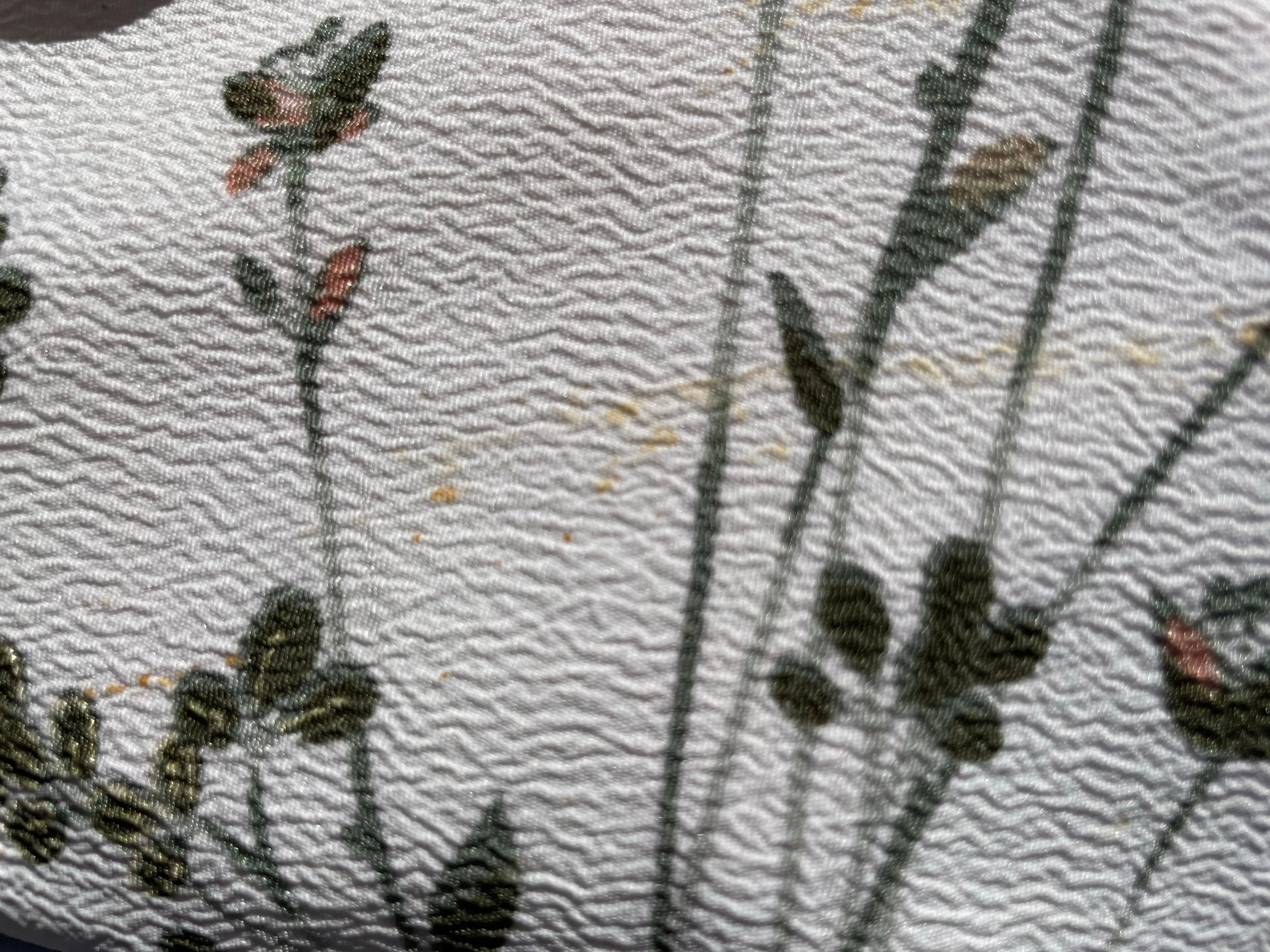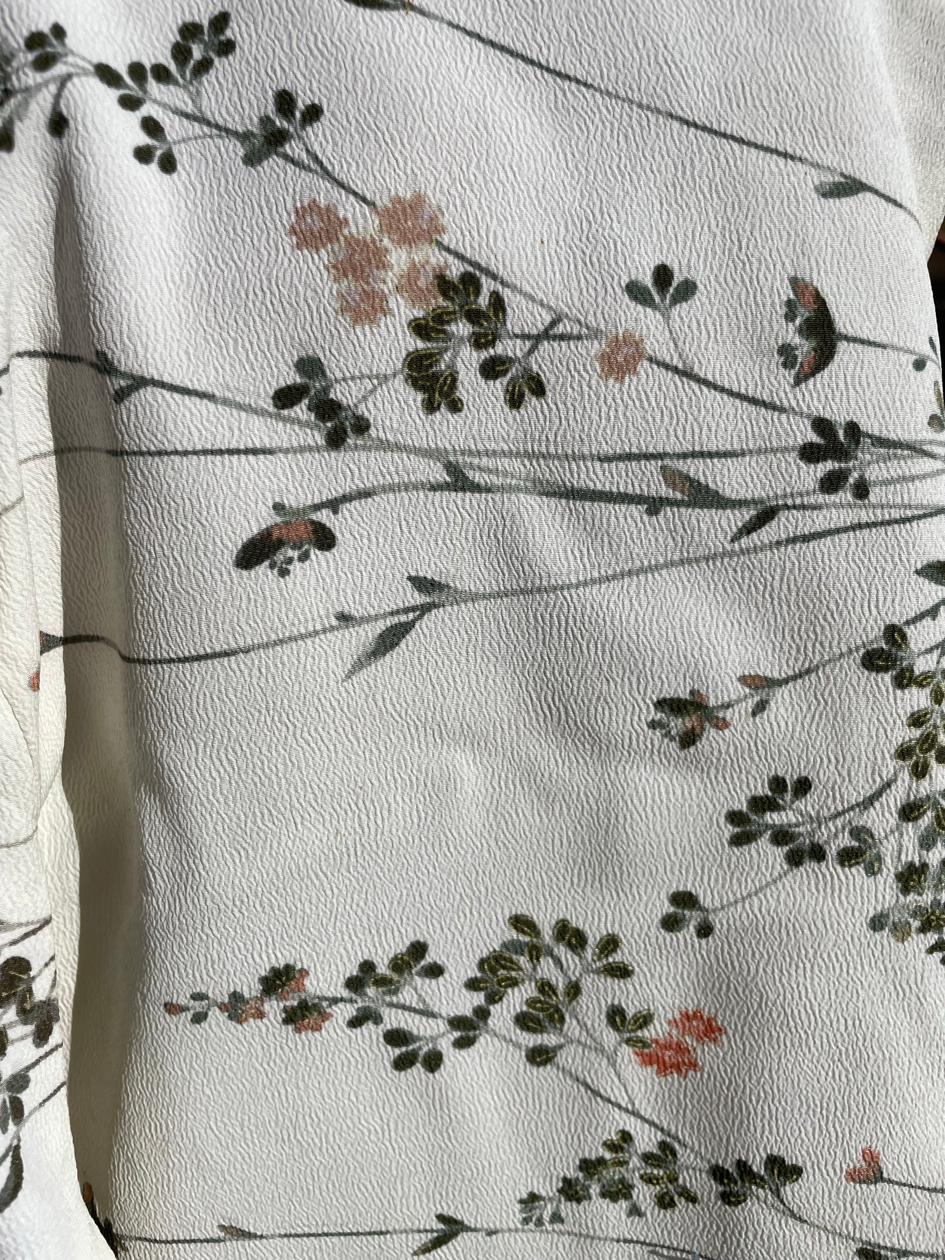 This HAORI is a beautiful beauty for spring/ summer. She has some small spotting but not noticeable because it blends in with pattern .
