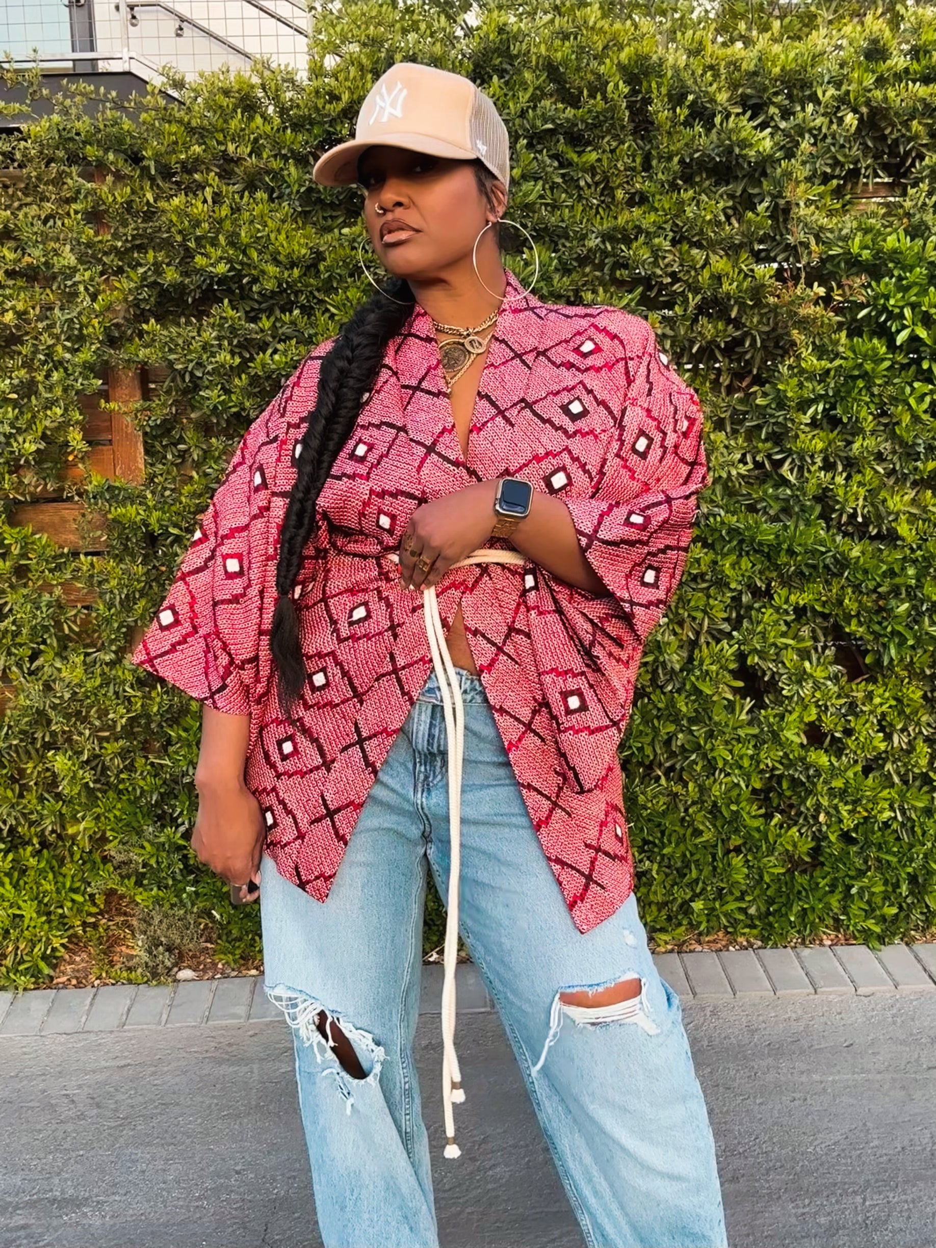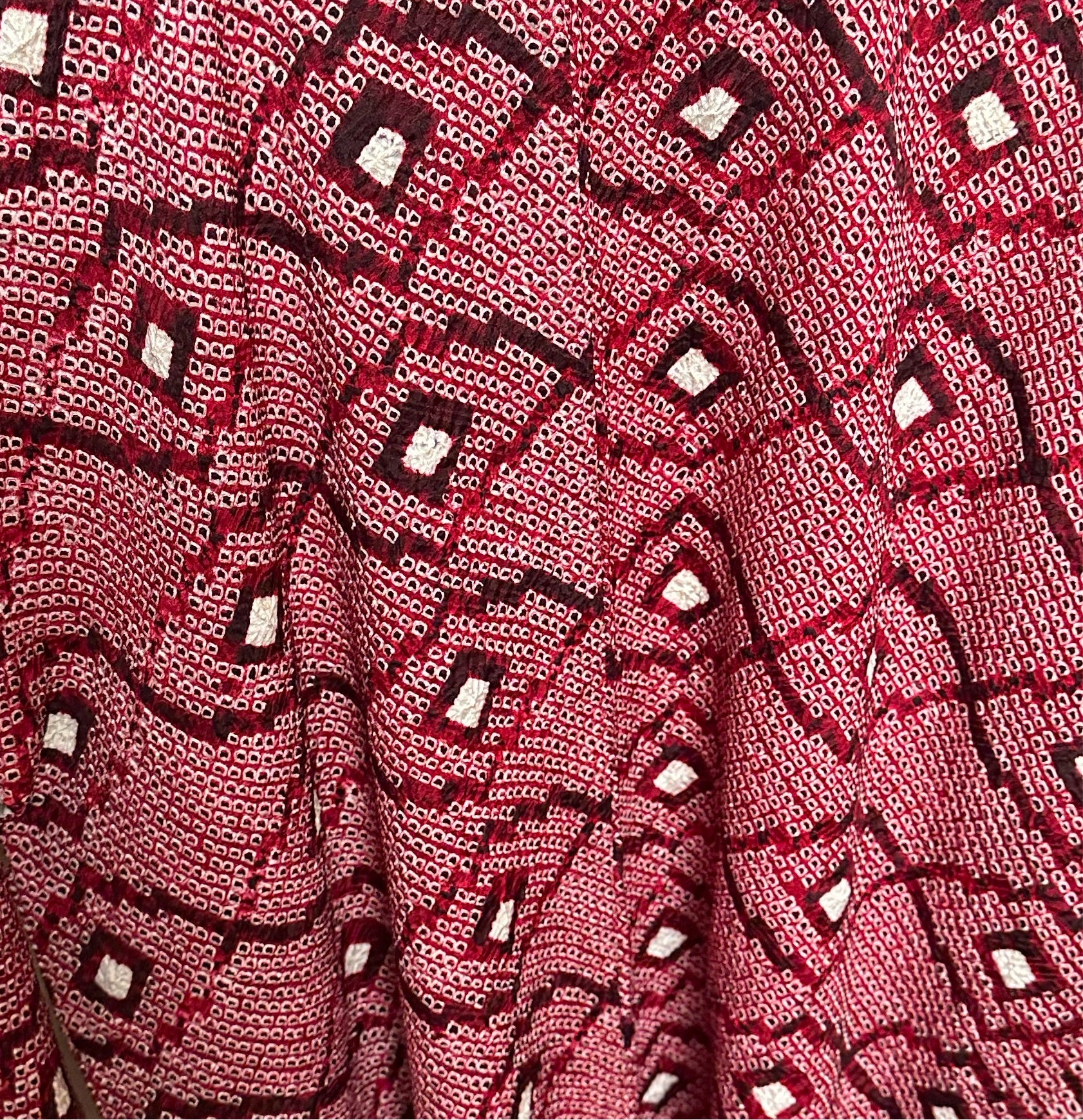 The kimono’s short haori design allows it to be perfectly paired with anything a closet has to offer. The vintage piece is a stunning combination of fun, comfort, and elegance with its loosely draped shape and large open sleeves.
