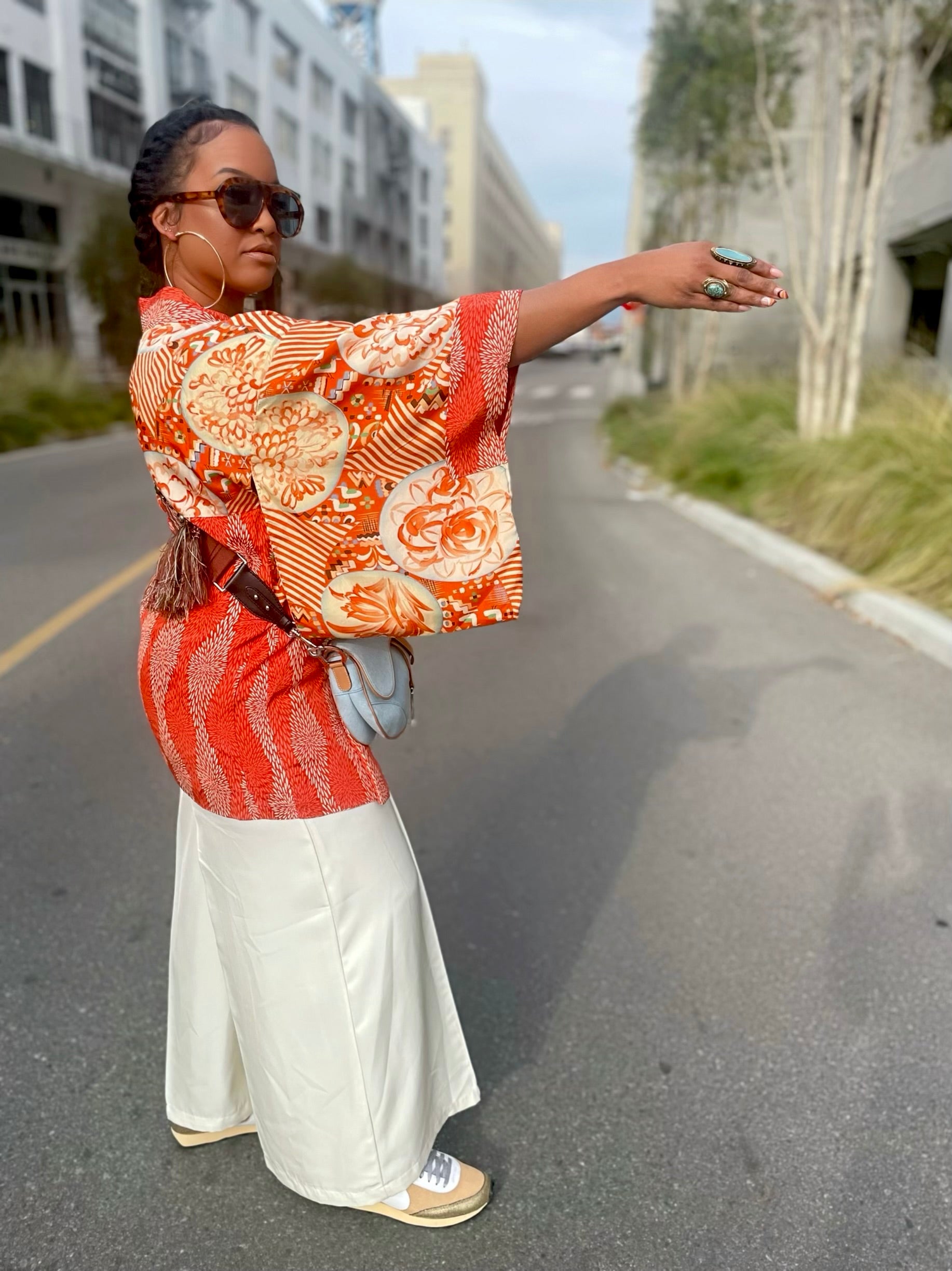 HAORI jackets are great layering pieces for the woman who loves a good layer . This kimono is bright and vibrant . This beauty is reversible.