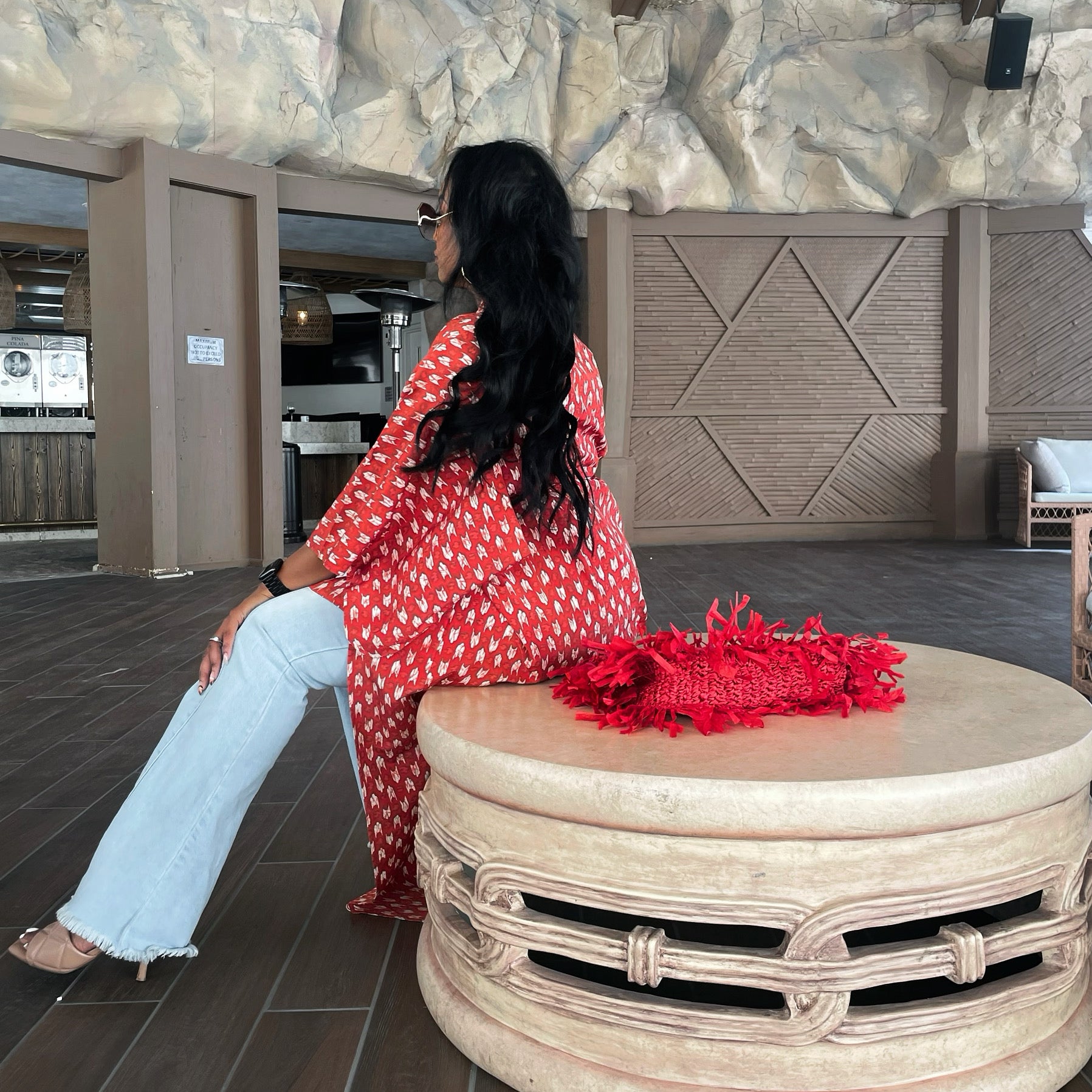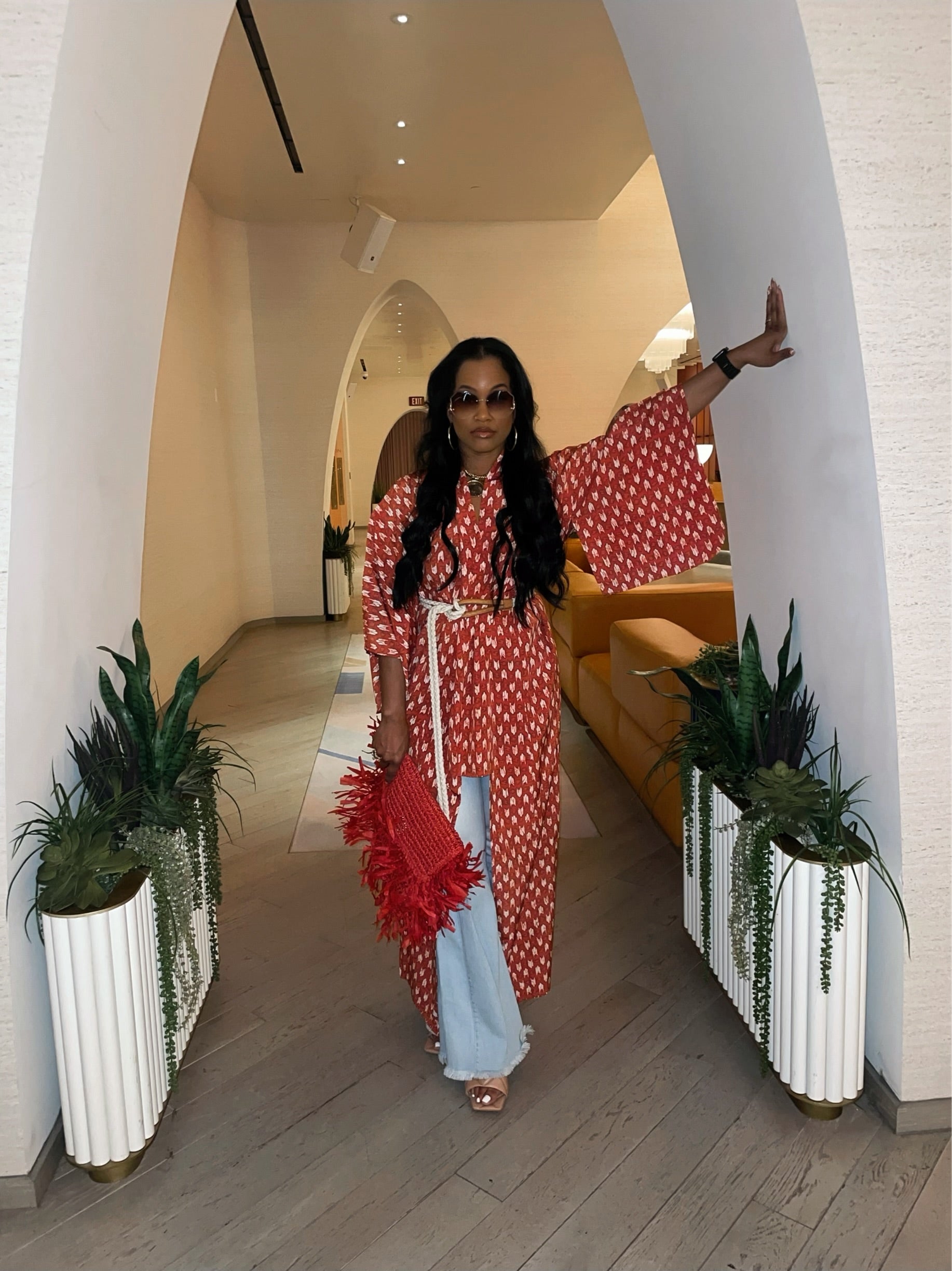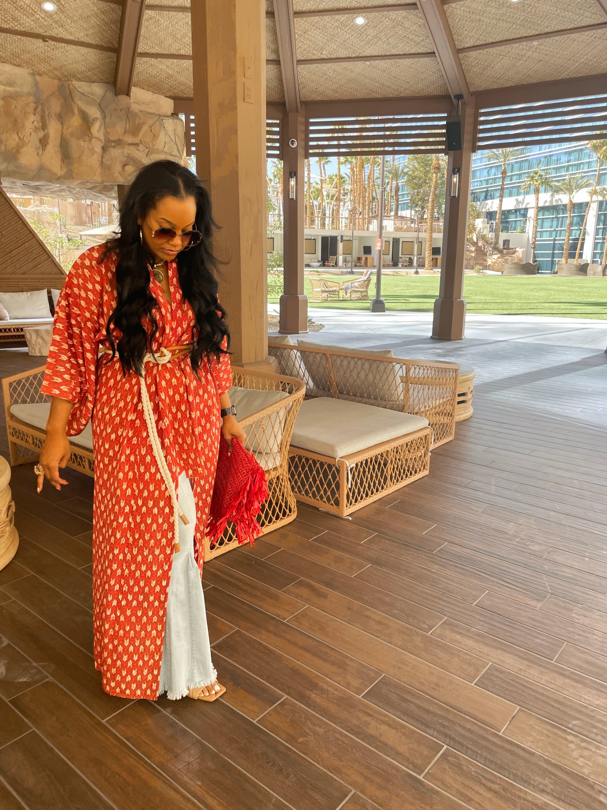 This Vintage kimono is beautiful. It has a beautiful pattern all over . This beauty is silk and very comfortable. Great for staycations and lounging .