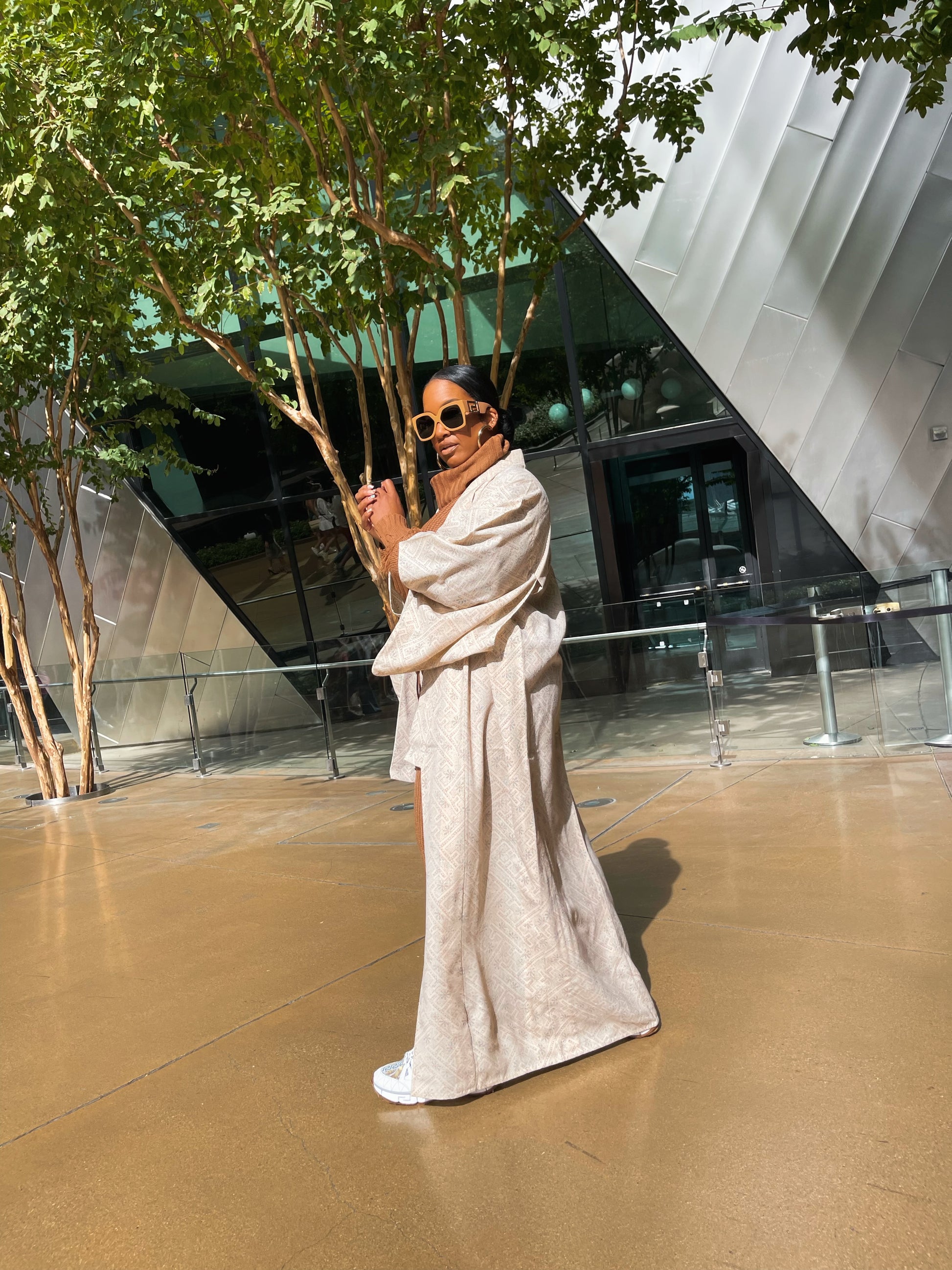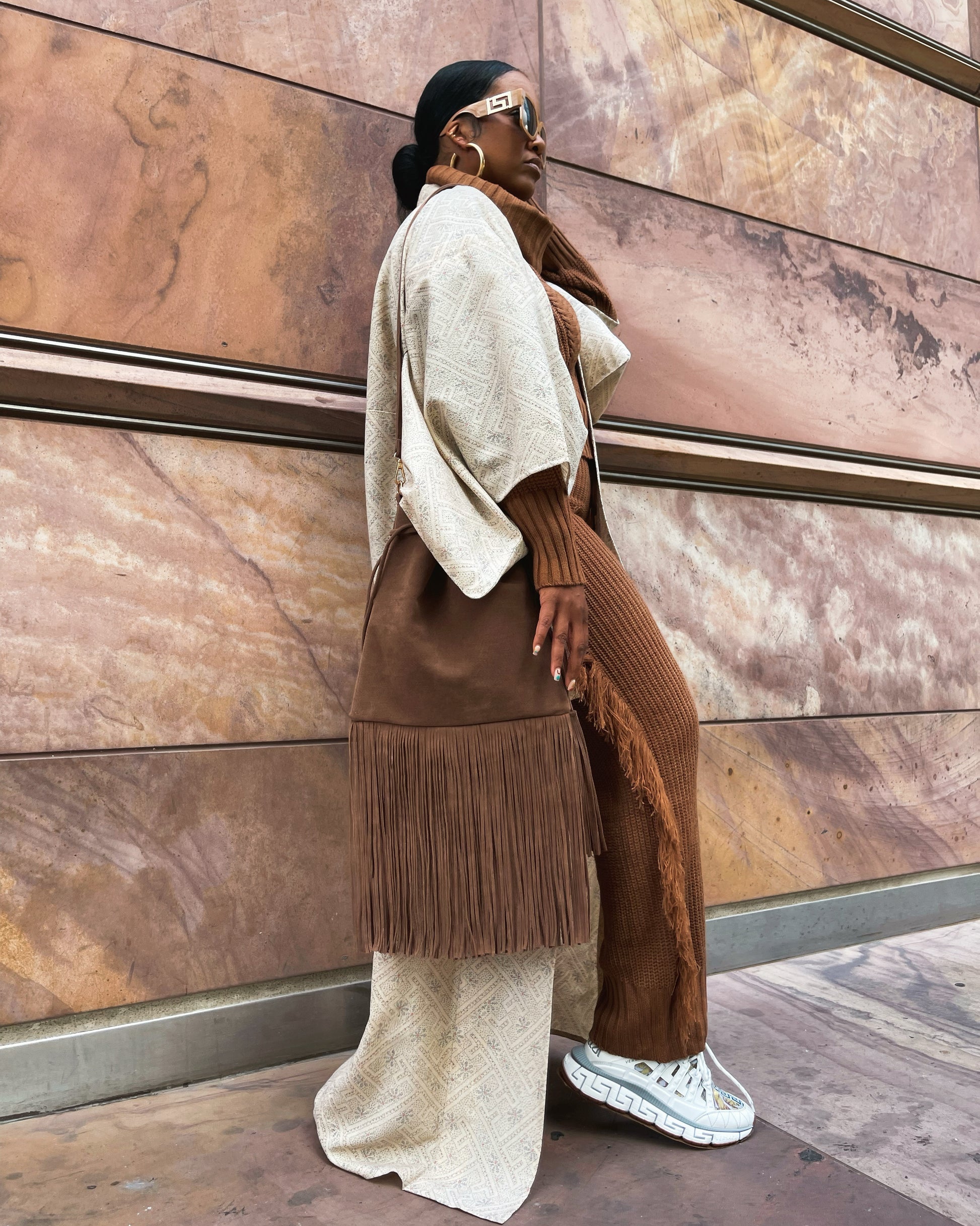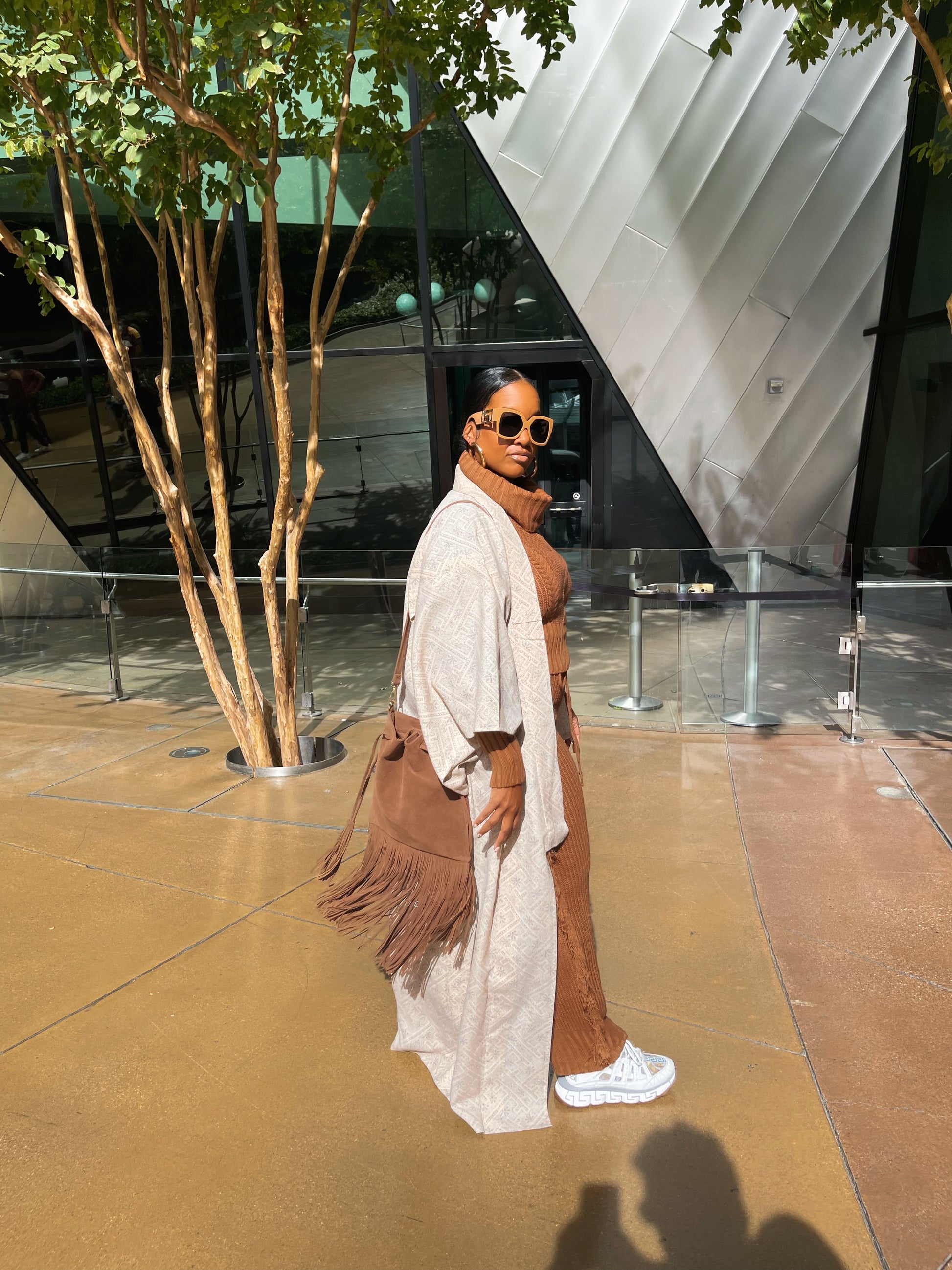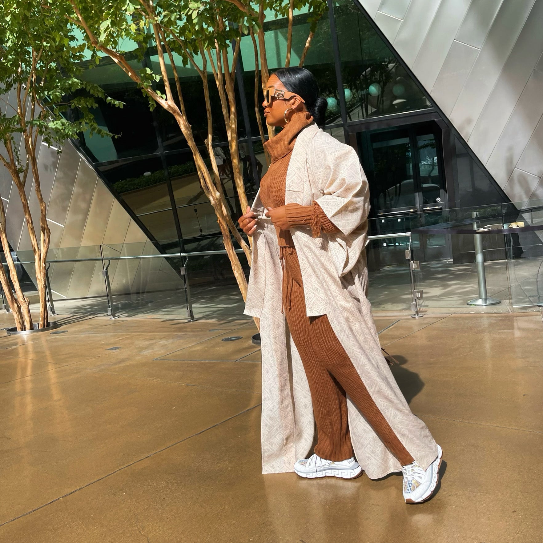 This kimono is light and airy. The material can almost give you linen vibes but it is hemp material. This is one of the pieces that I could bring to the pool, lounge around the house, pack lite trip and even throw on some cute slacks and go to dinner.