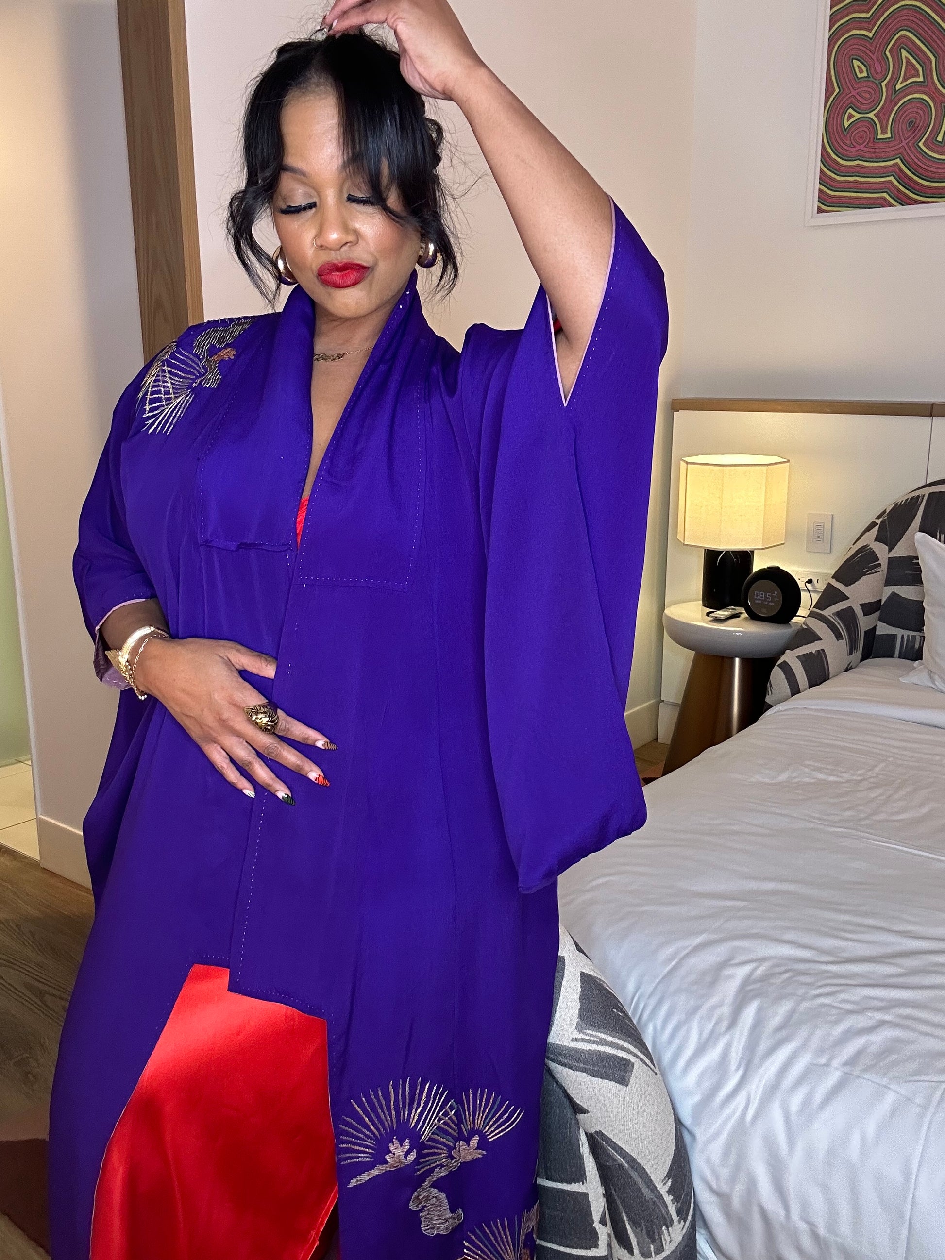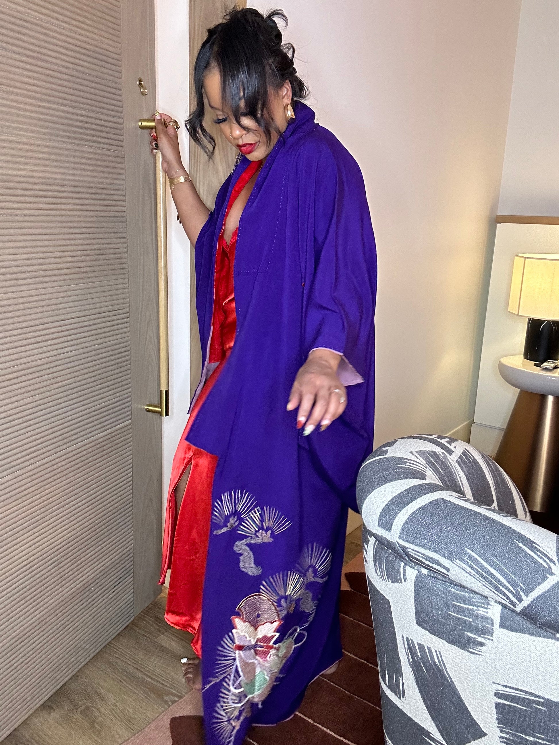 It’s such a beautiful purple shade. When you wear this piece you feel like royalty and nostalgic. I love a relaxing night in a kimono looking sexy and effortless.