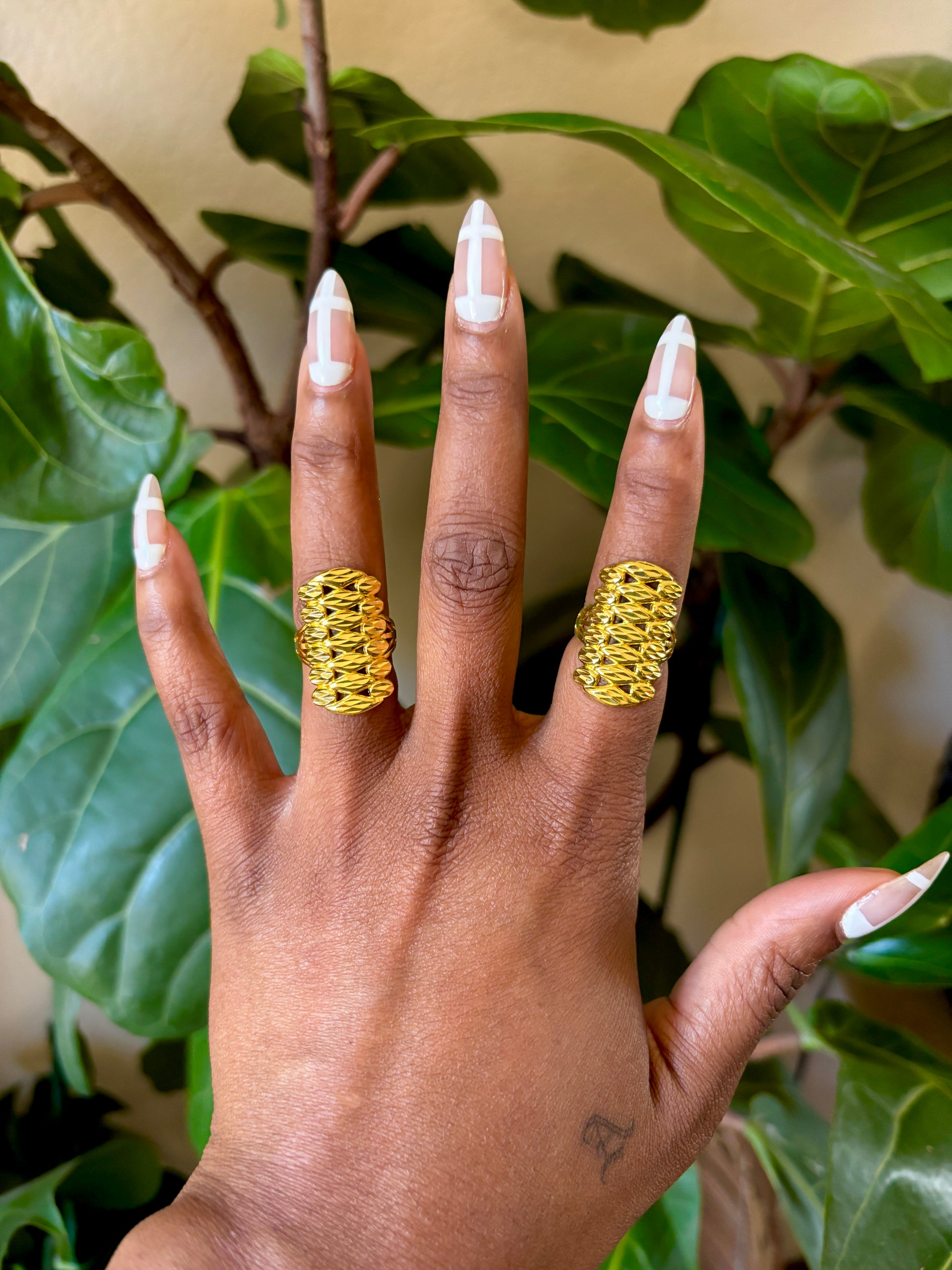 The Golden hour Ring is a statement piece with an idesign to bring texture and modern elegance to any look. Made from soft yet durable fabric, this lightweight ring offers a unique, sculptural feel that stands out effortlessly.