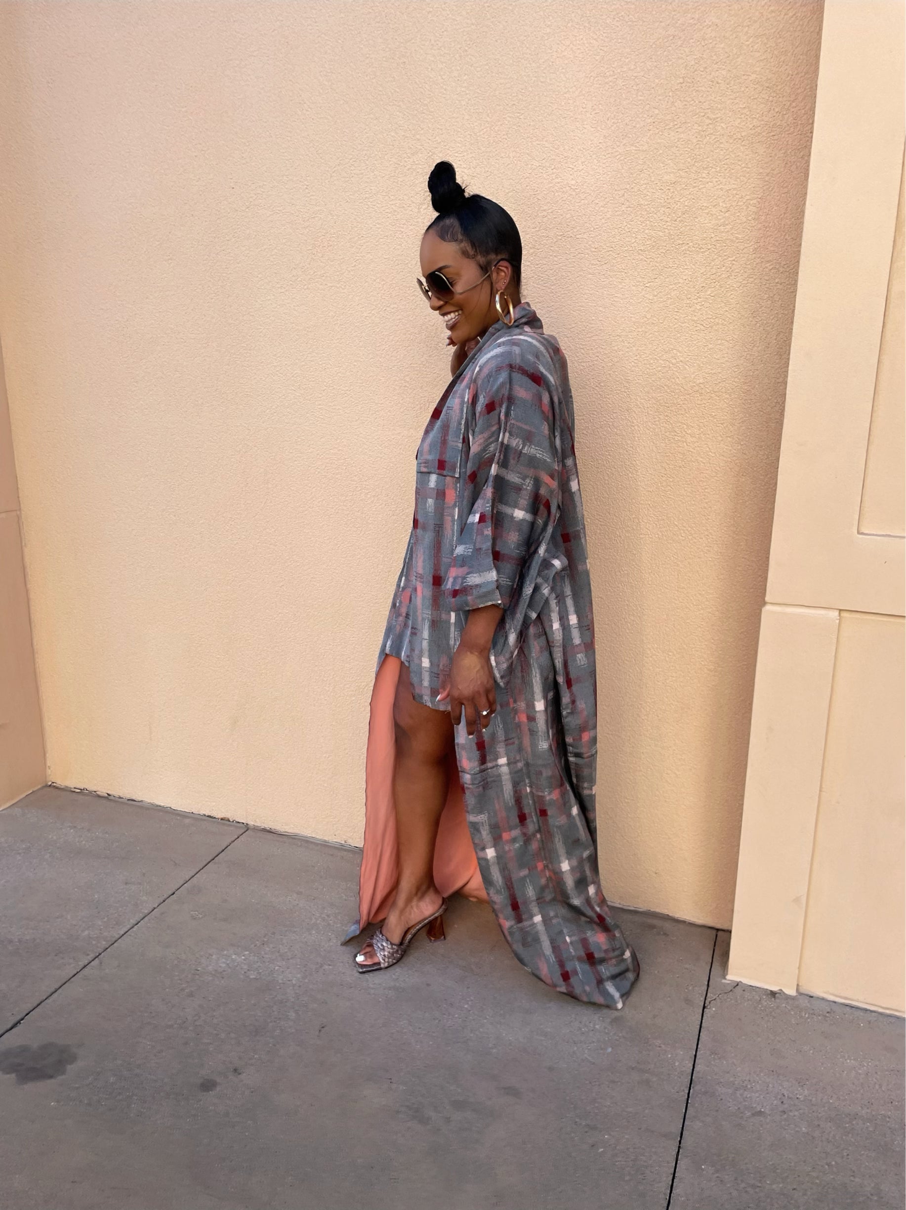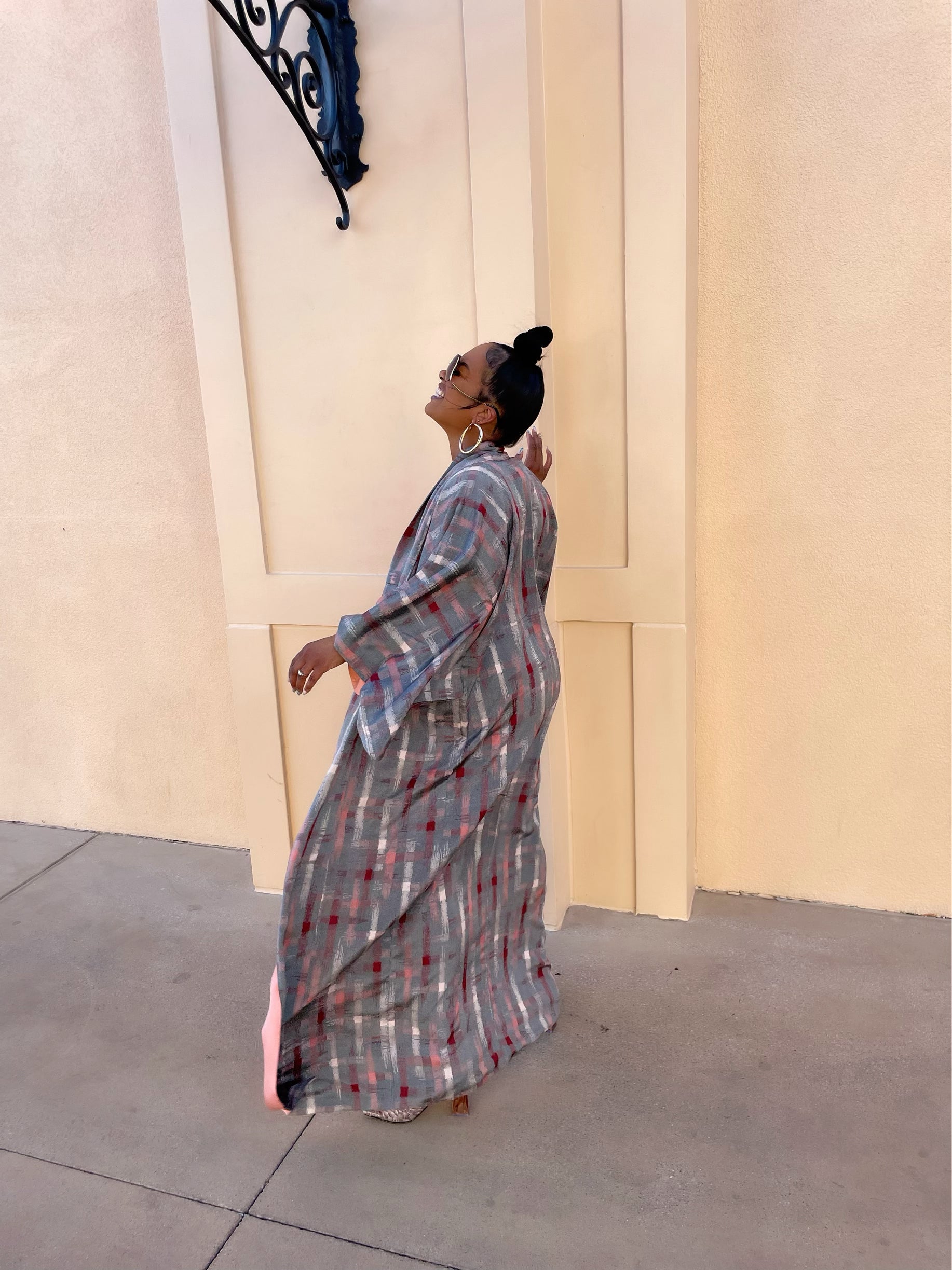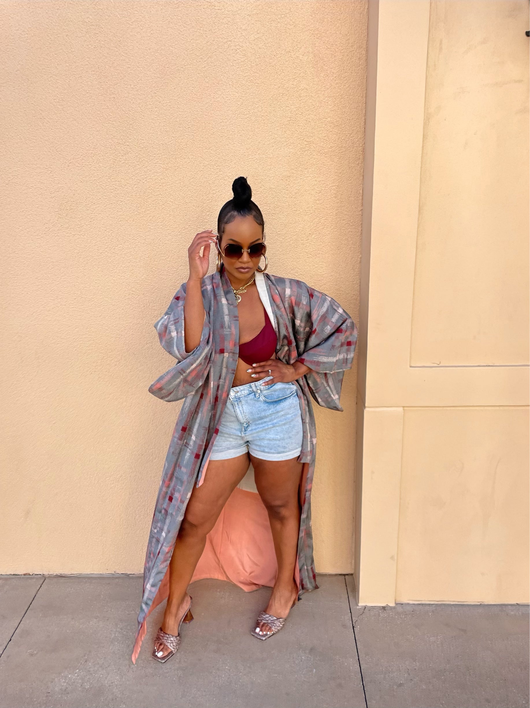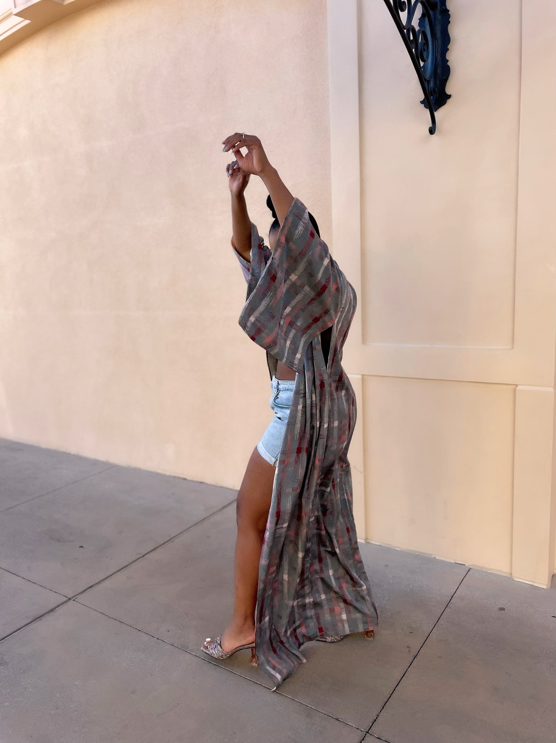 Beautiful and vibrant plaid detail kimono Jacket.This unique piece looks effortless paired with shorts and a tank for a summer vibe. Easy to add to any summer look.