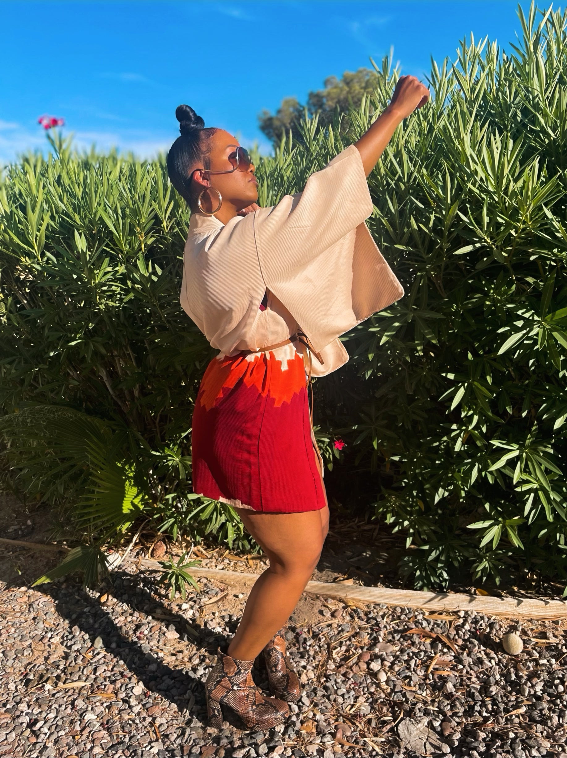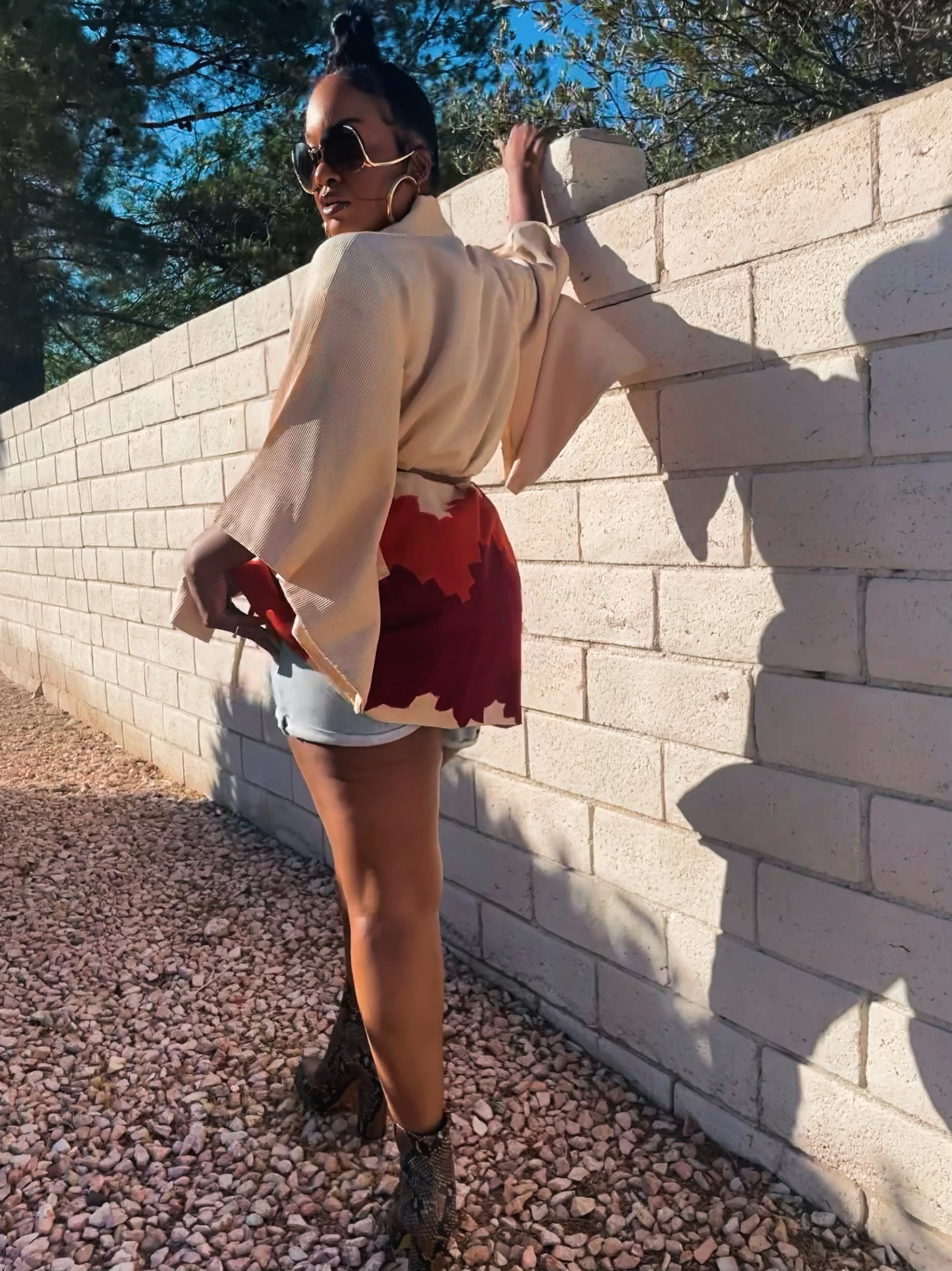 I am obsessed with this beauty and I love the color on this Haori. If you love a vibrant statement piece this is the one for you. This burgundy and orange print is the color for this season.