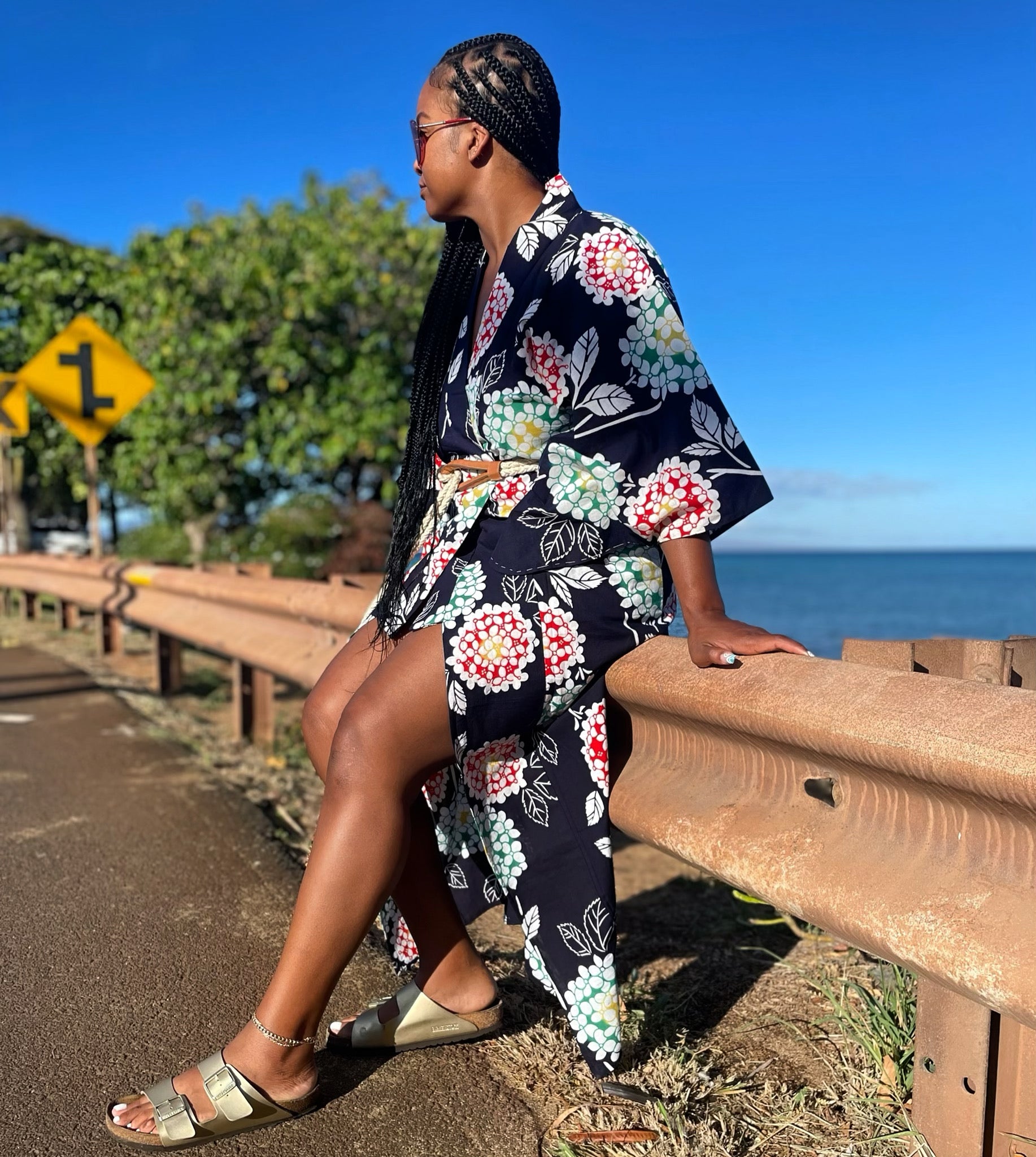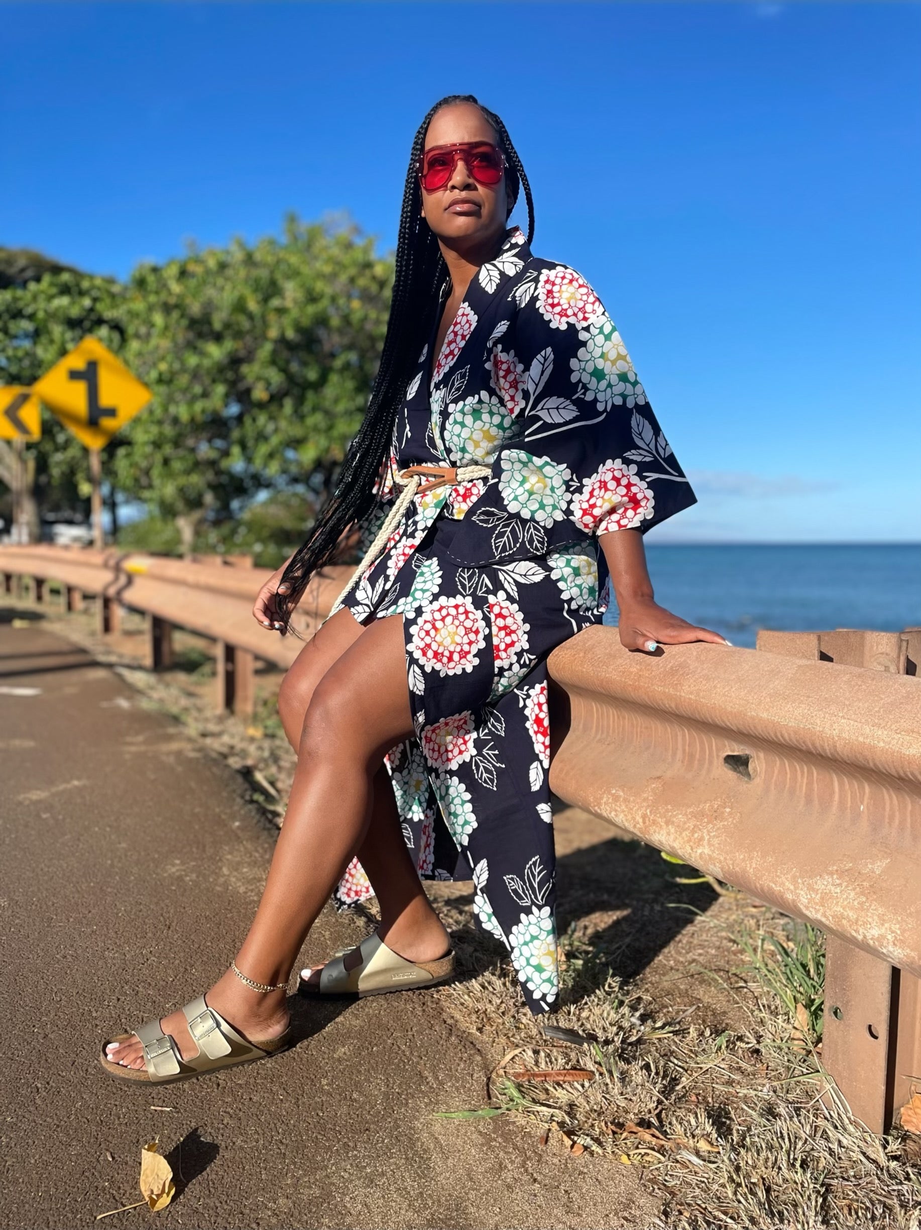 This pretty floral kimono is perfect for summer and light weight fabric. Great as a cover up or lounging. Rock a kimono with Birkenstock’s and you’ll be comfortable all around.