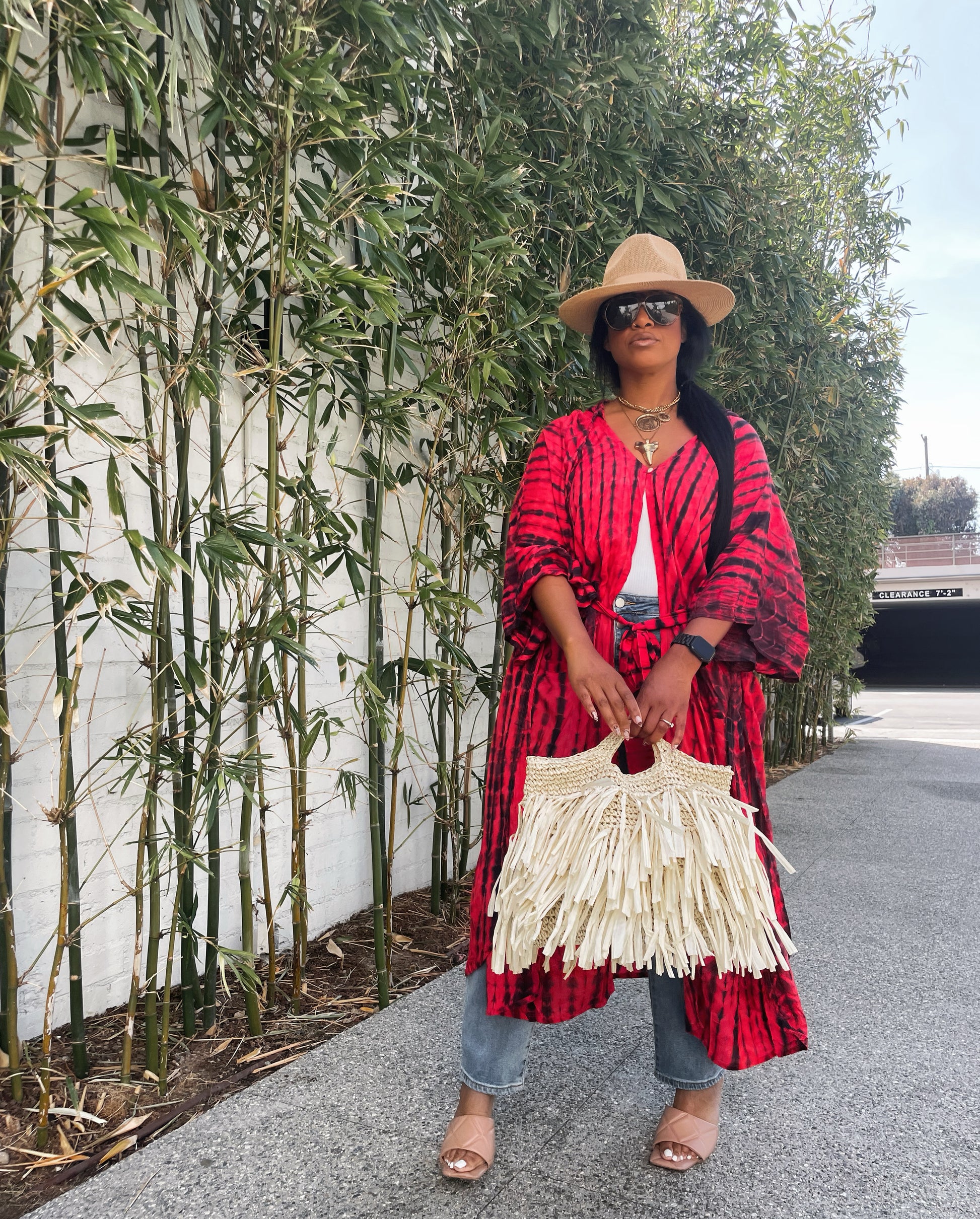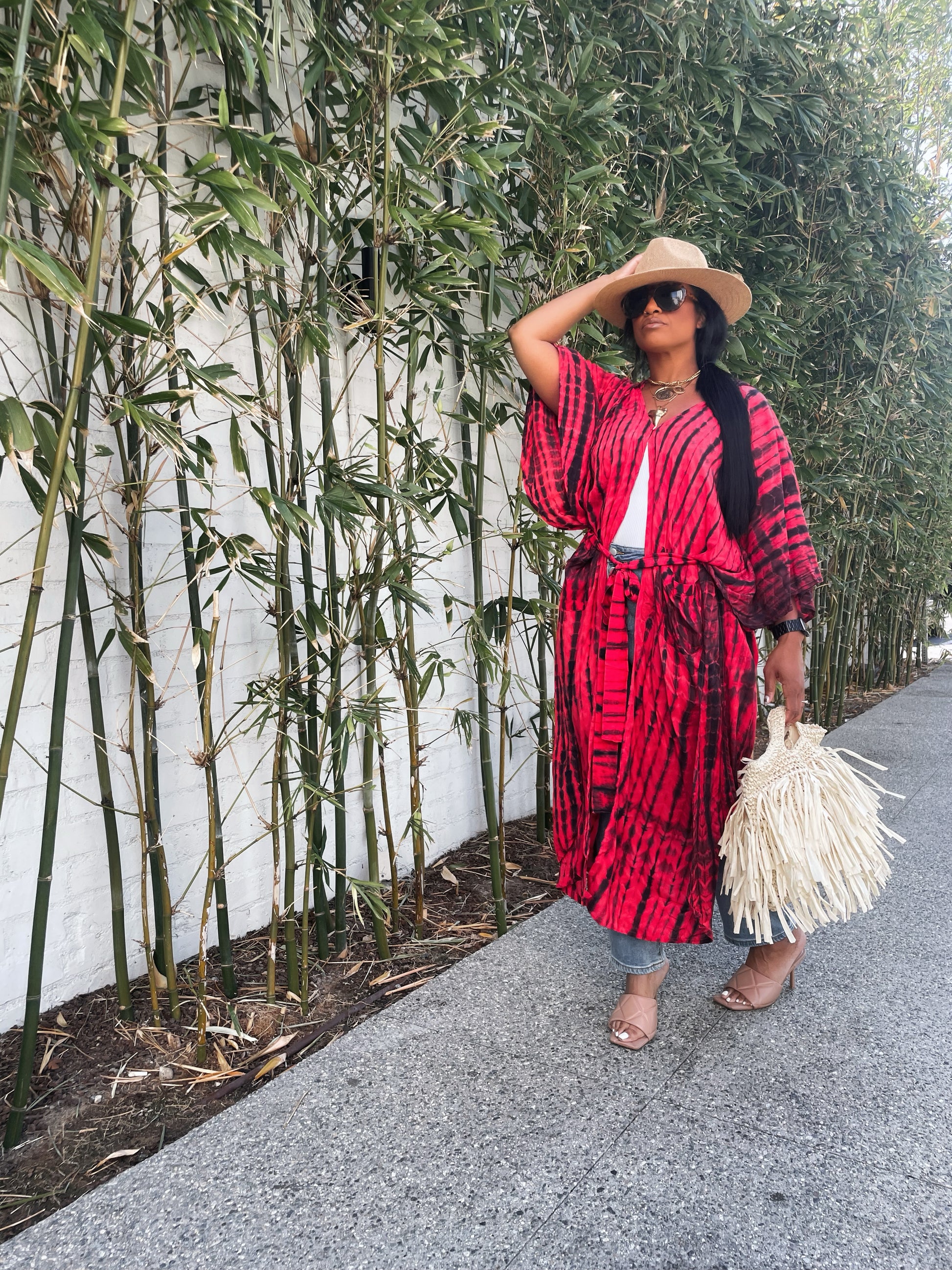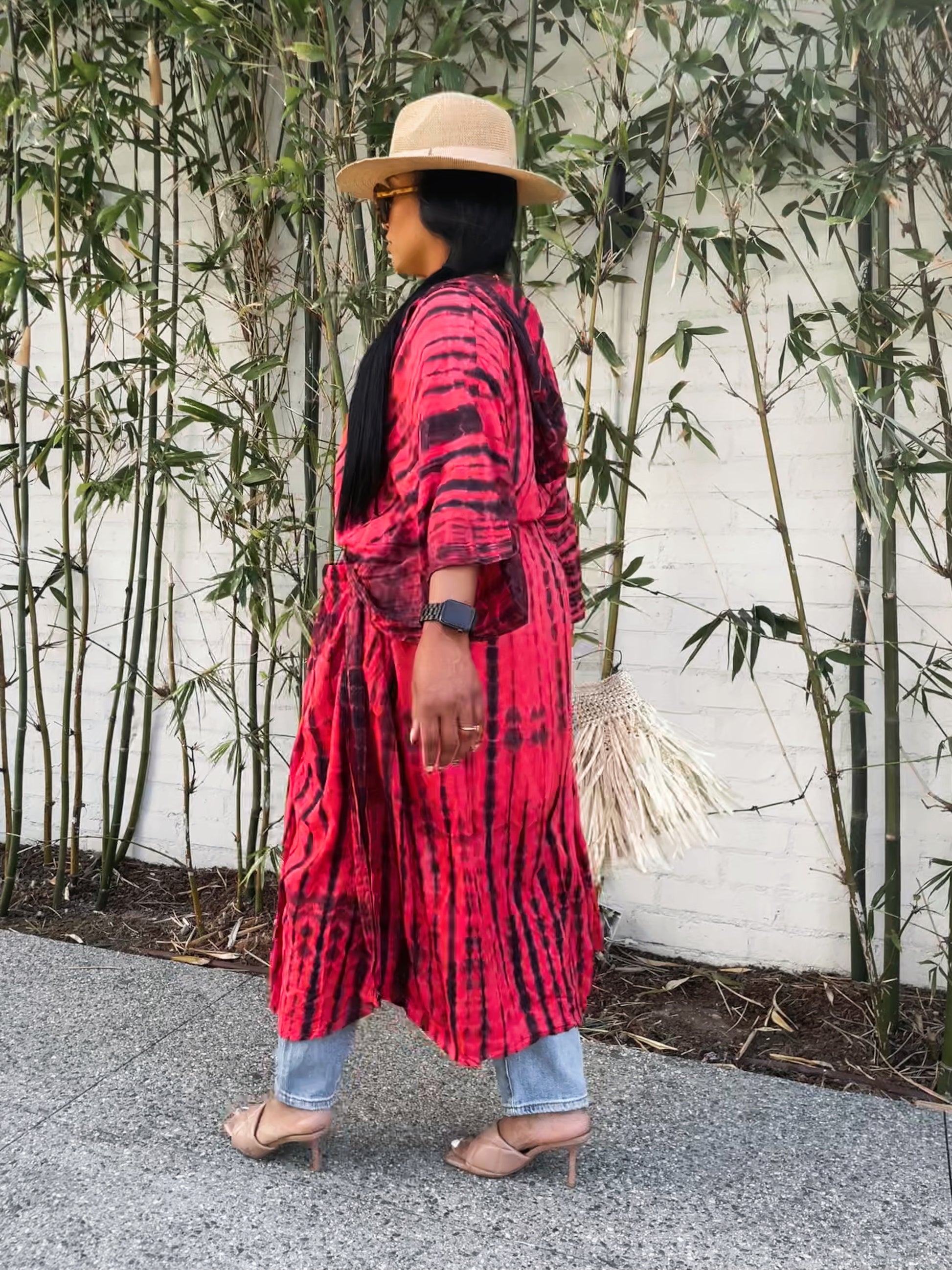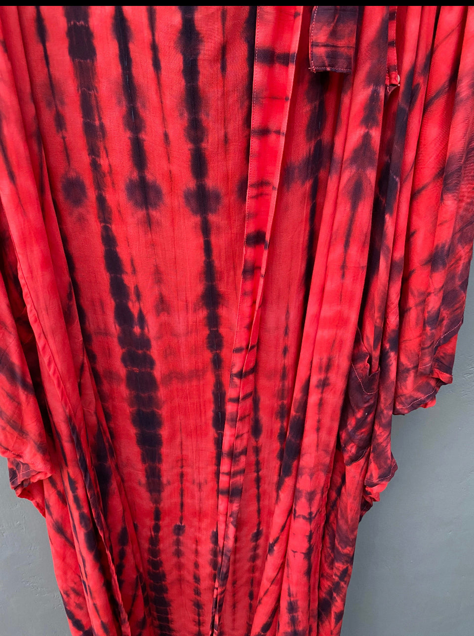 This hooded poncho is made out from soft and light rayon . You can also wrap the sleeves around your neck and wear it as scarf or bathing suit cover up.
