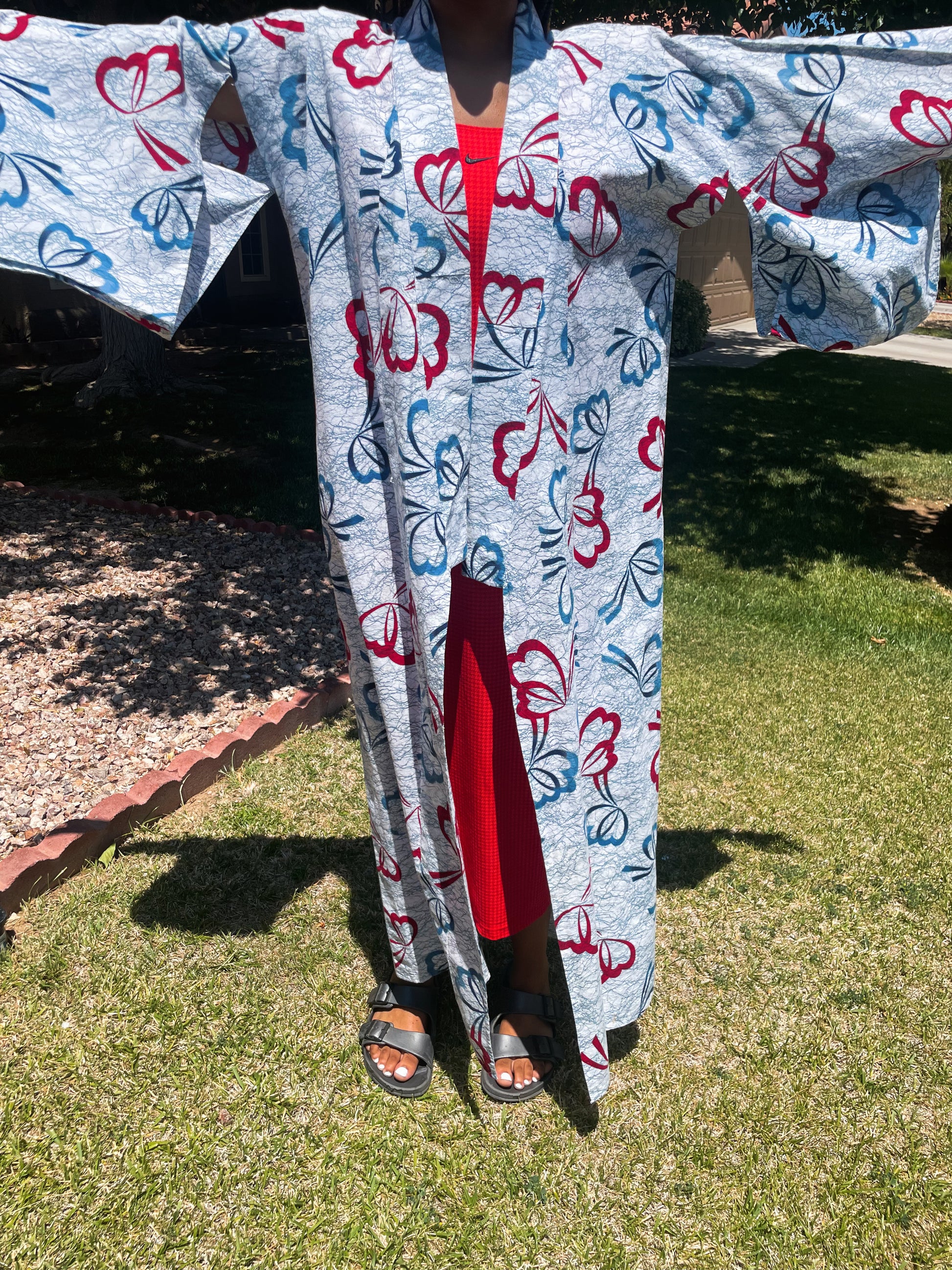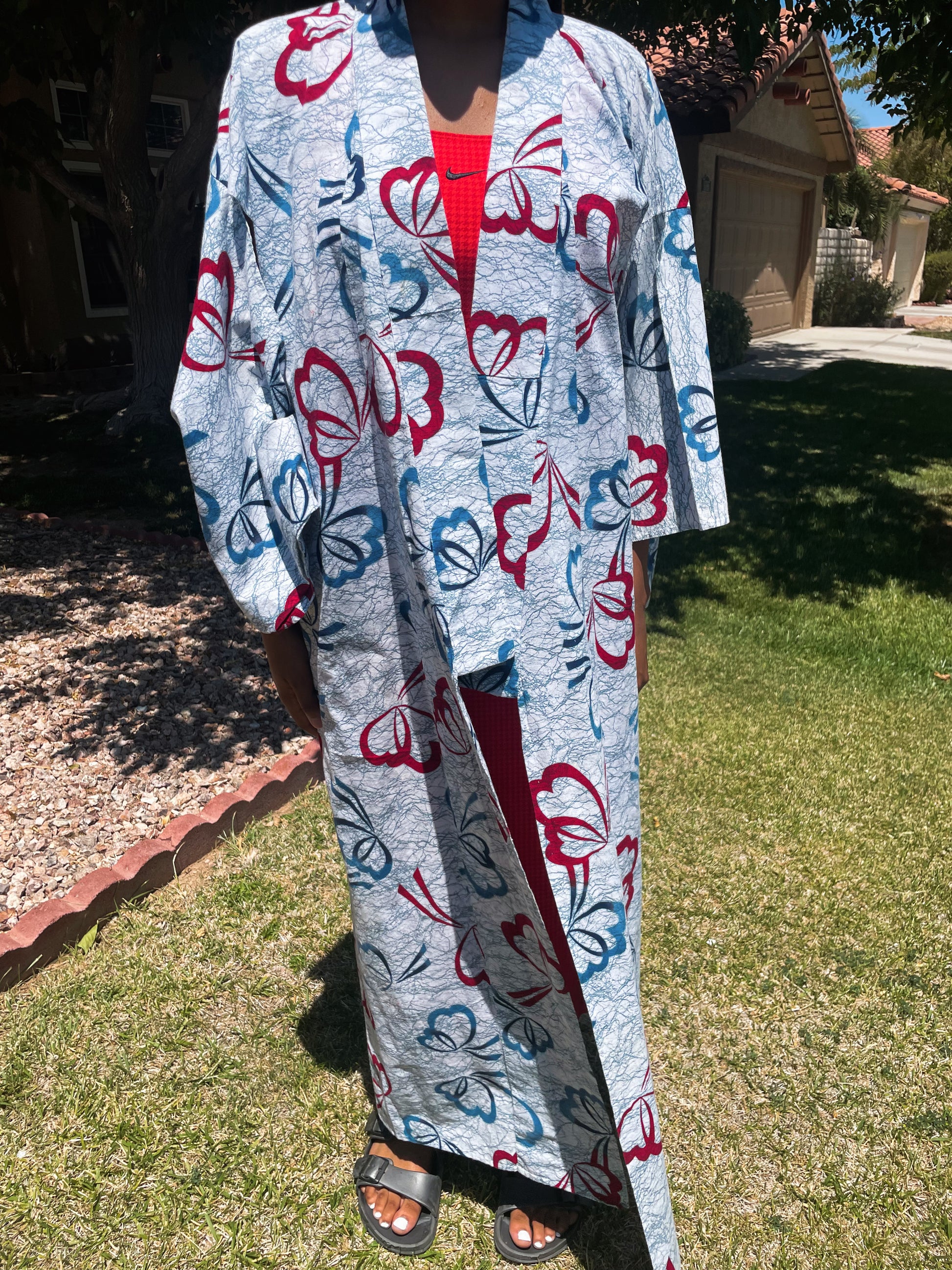 This cotton kimono is perfect for summer. and light weight fabric. Great as a cover up or lounging. Rock a kimono with sneakers and you’ll be comfortable all around.
