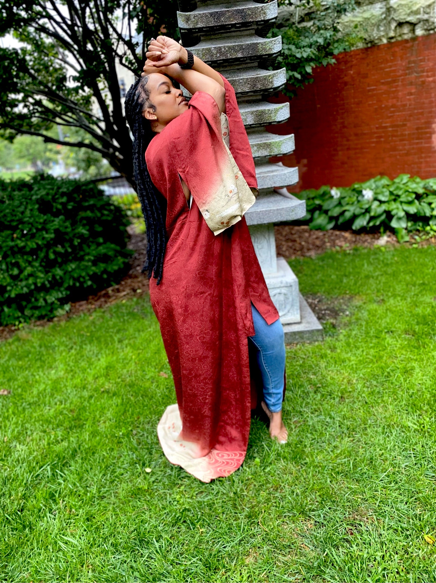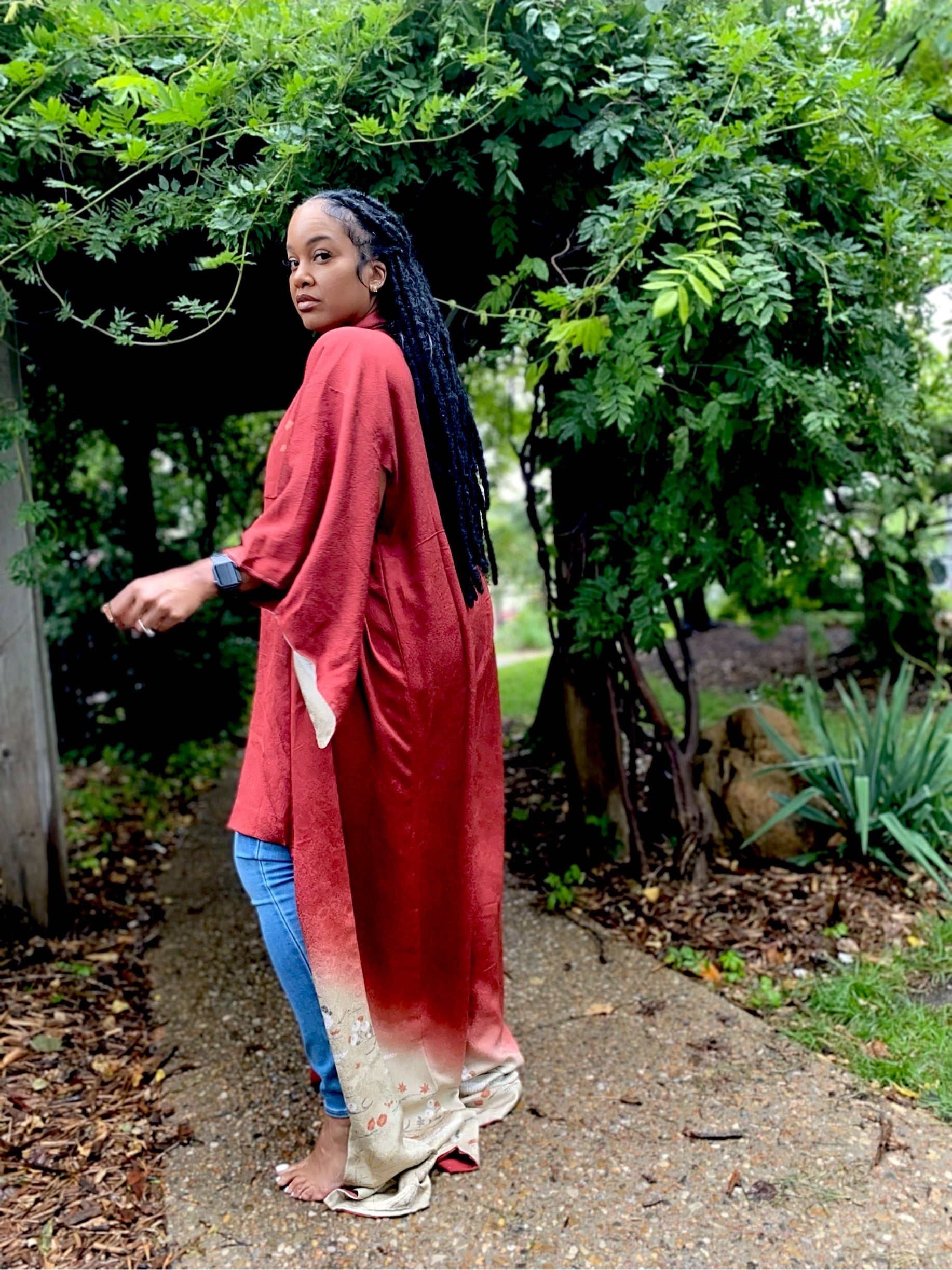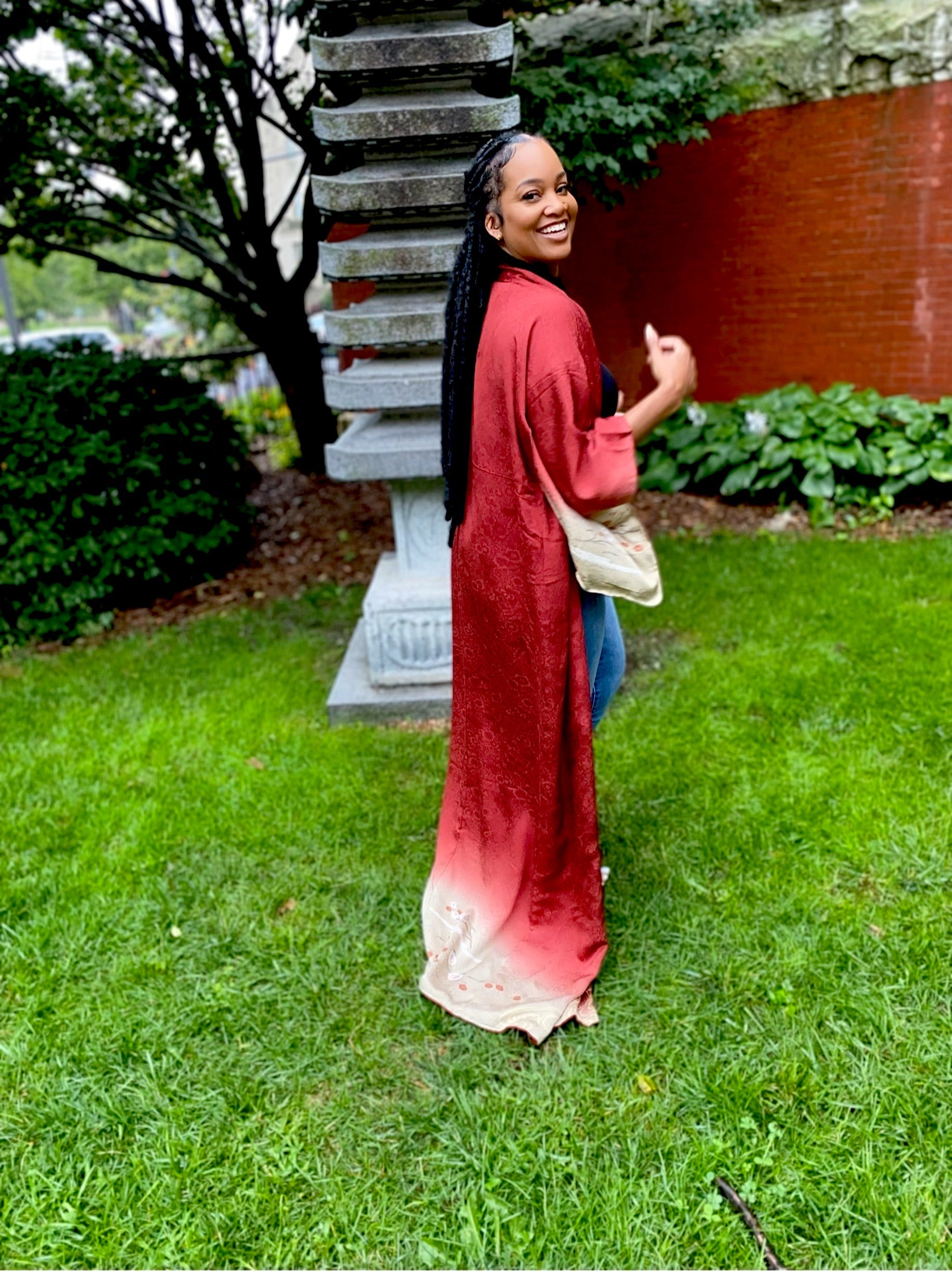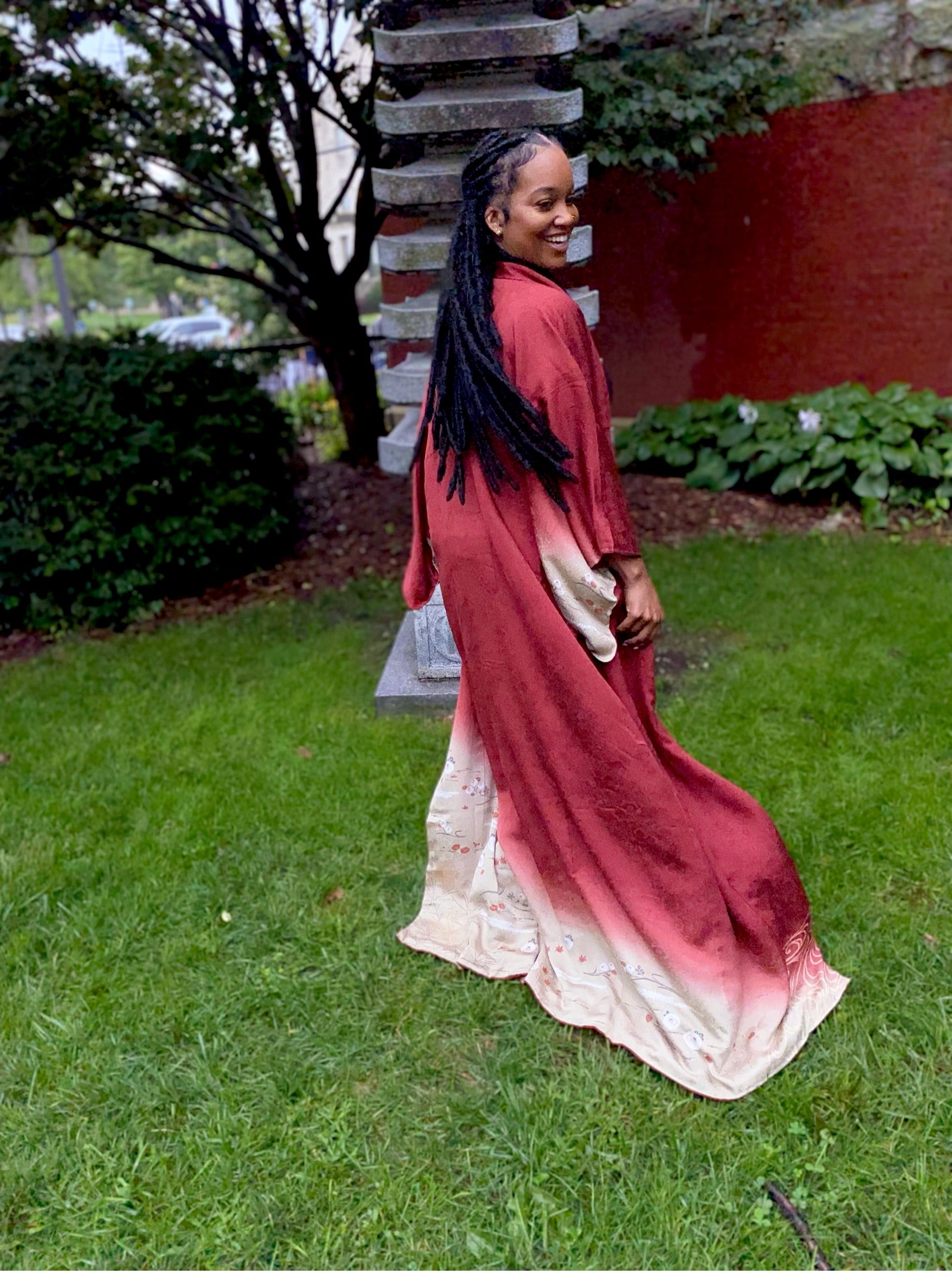 Insanely beautiful and a unique color-block of burgundy and nudes with hints of gold . This beauty is perfect for any day. very feminine. This beauty is in great condition.