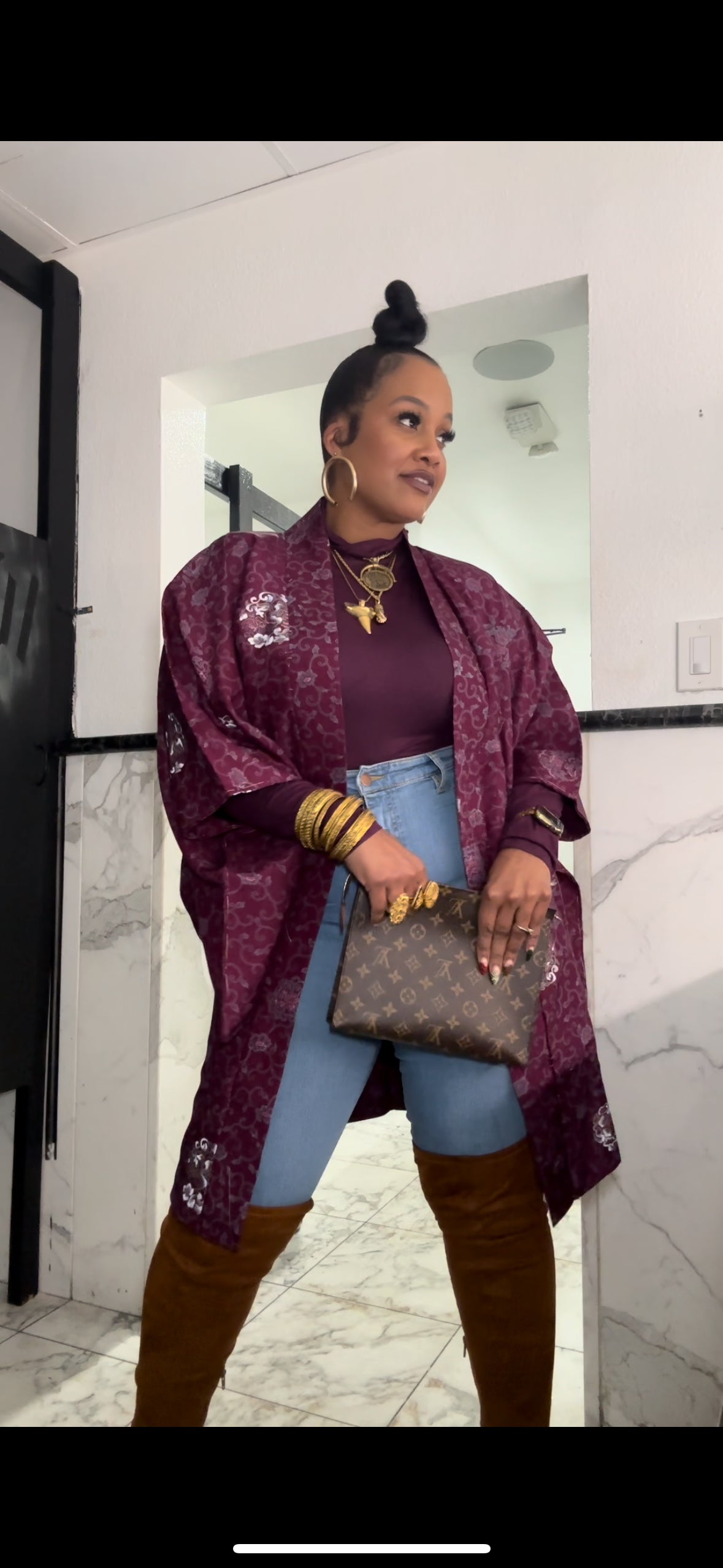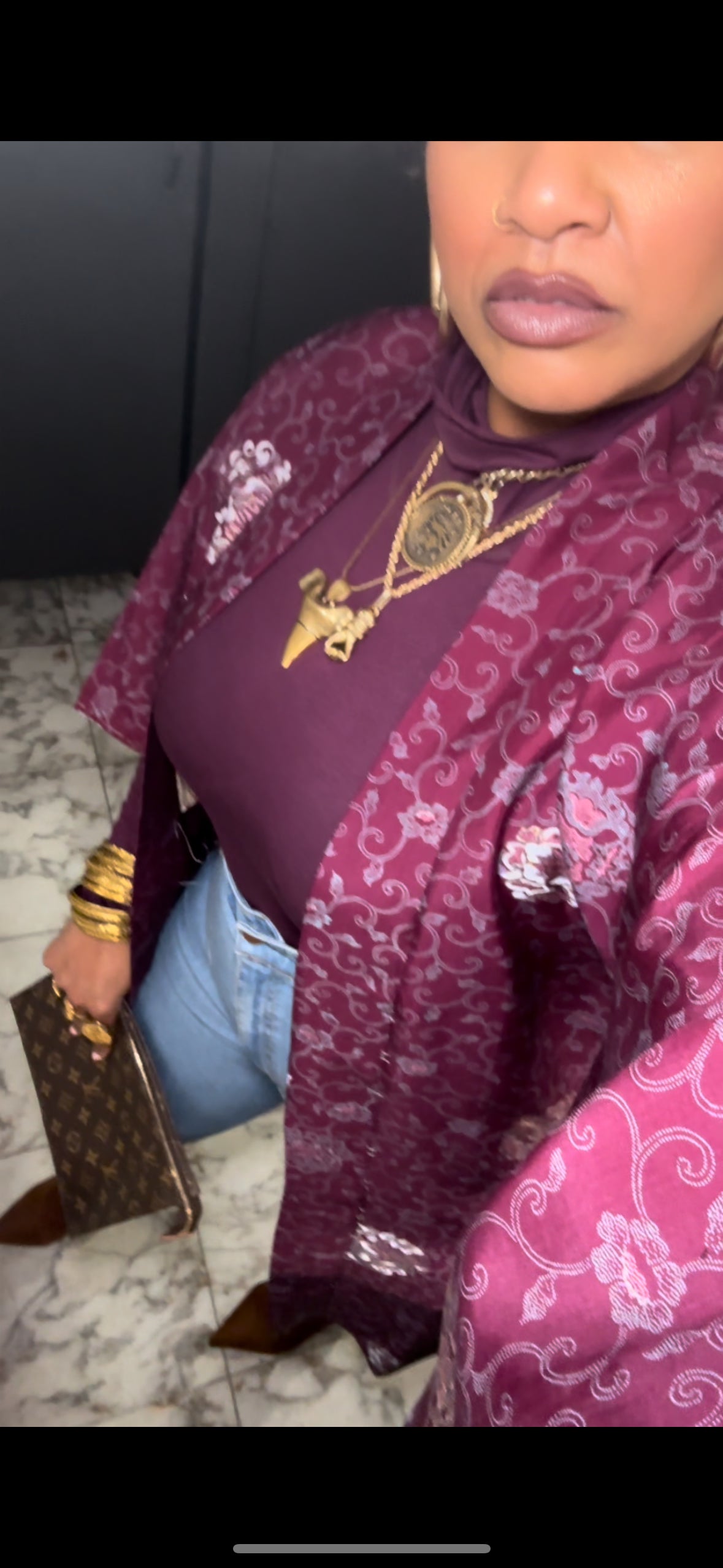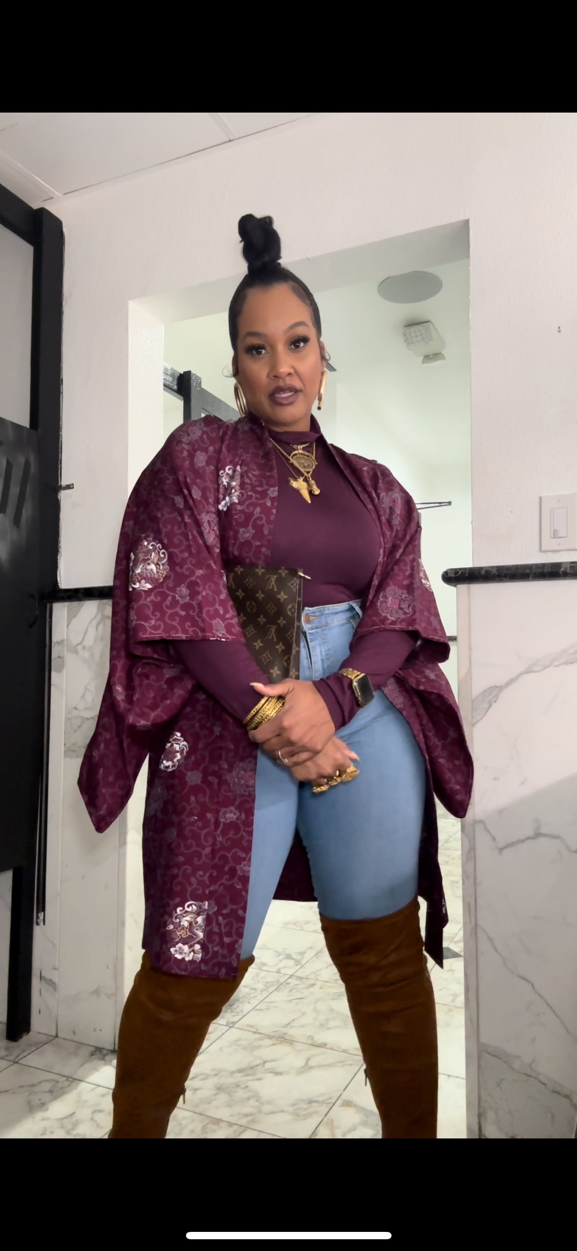 This lovely silk kimono is ideal for any occasion. This is the perfect piece for stepping out on ladies night. Pair with a turtleneck for winter vibes.