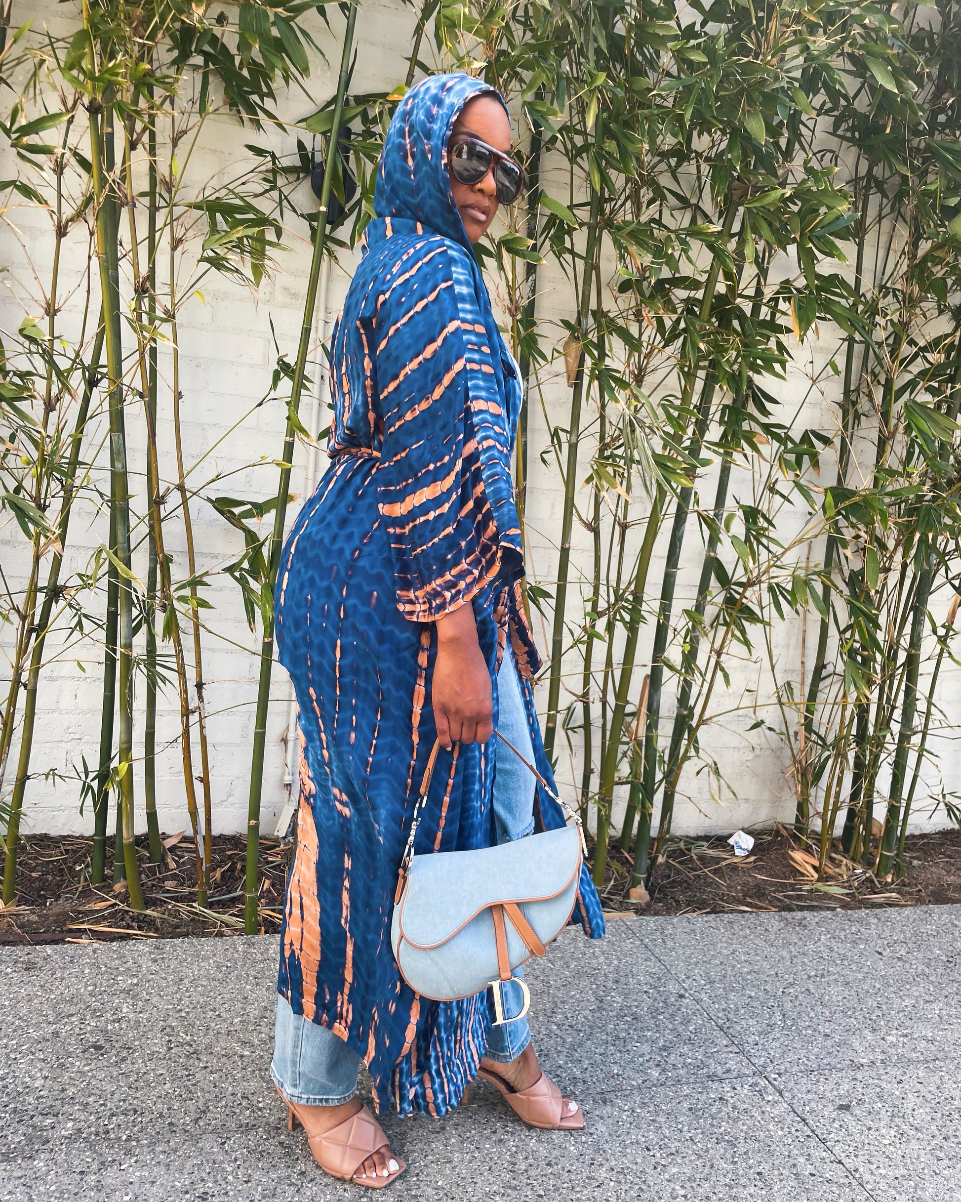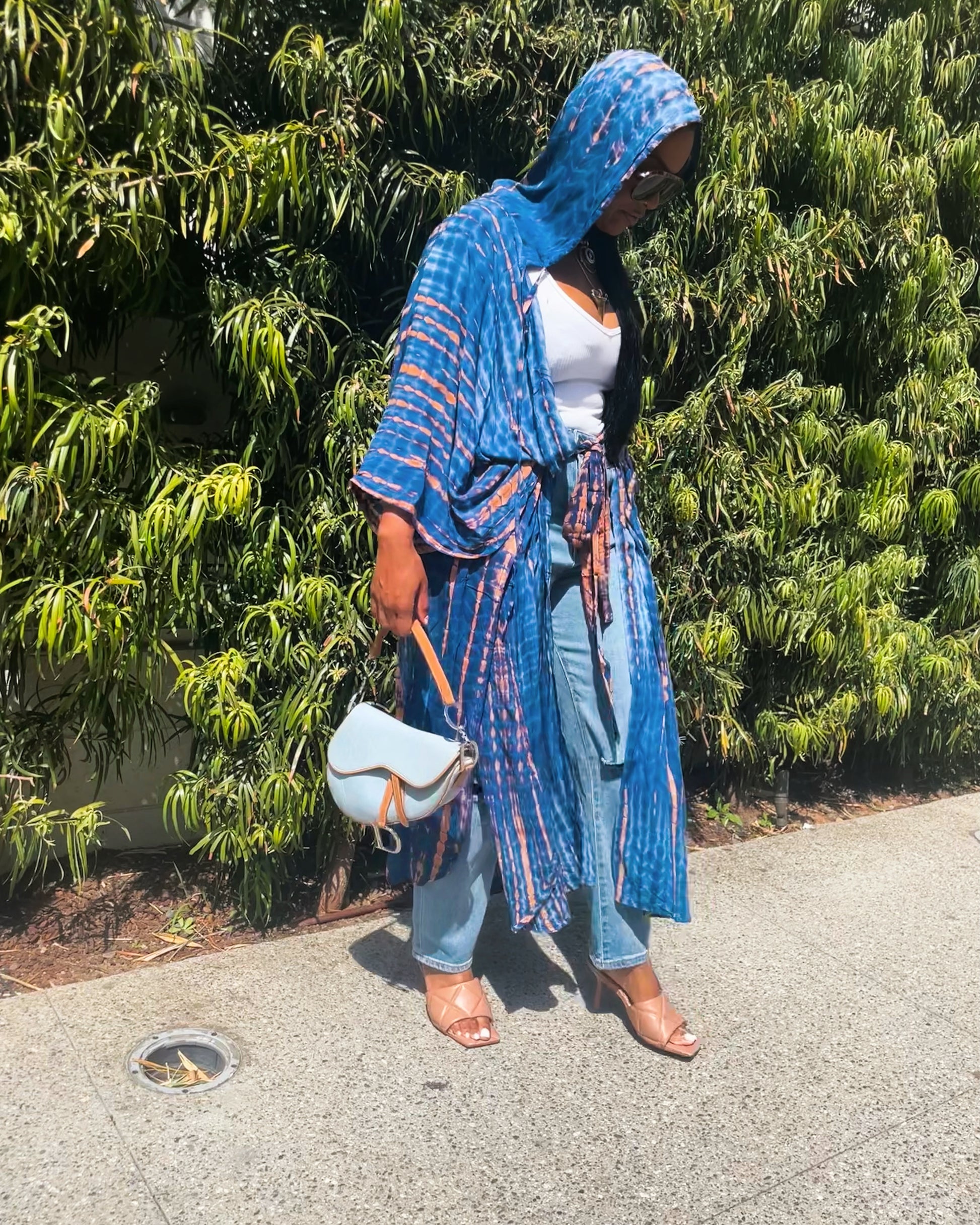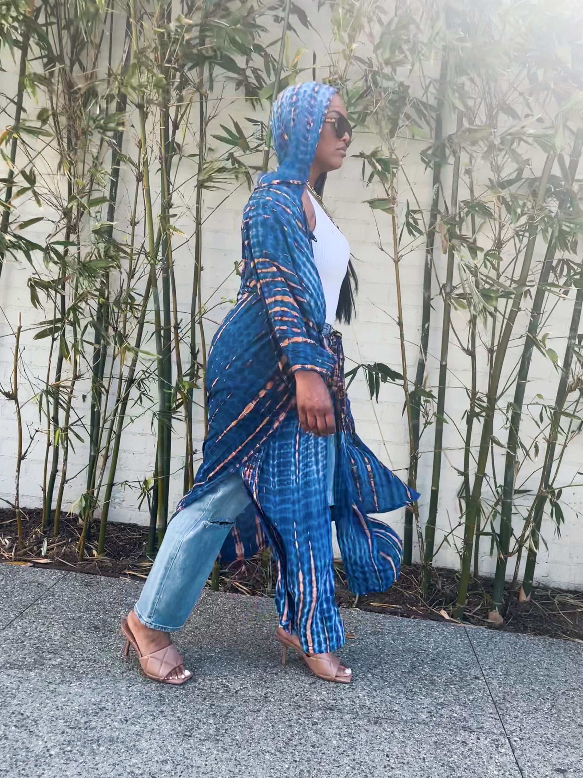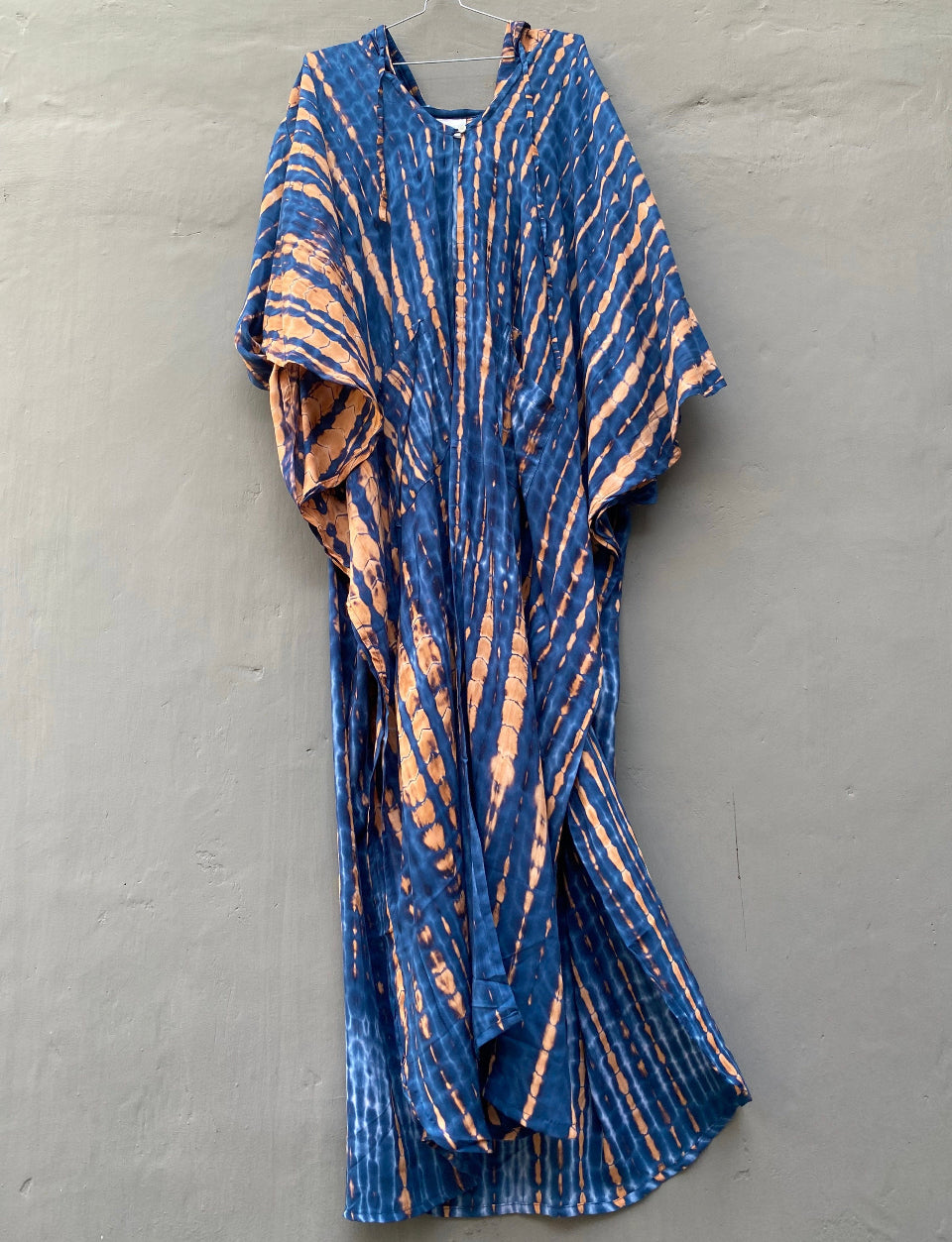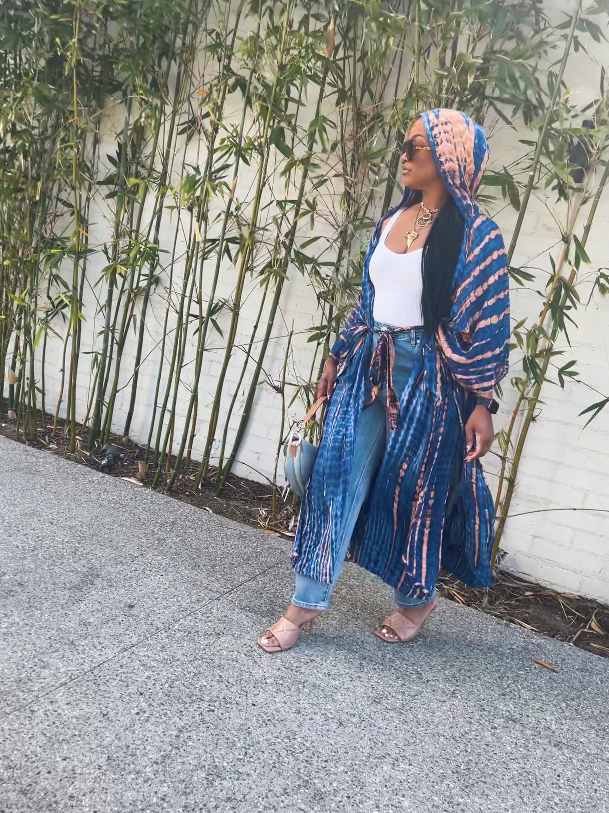 This hooded poncho is made out from soft and light rayon . You can also wrap the sleeves around your neck and wear it as scarf or bathing suit cover up.