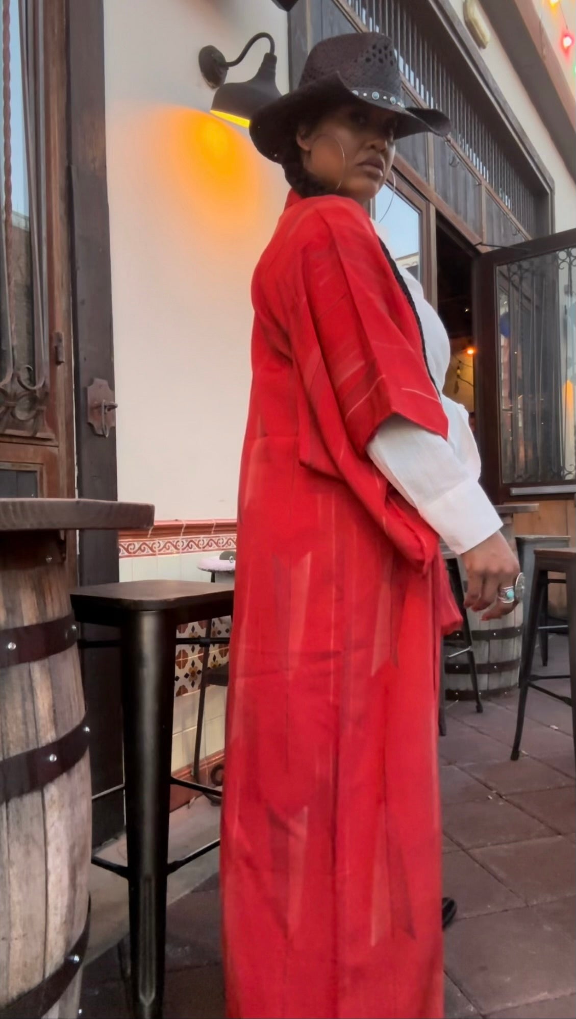This Burnt red/orange colored beauty is Gorgeous . She is vibrant and definitely a statement piece . You can wear this beauty is so many ways and occasions.