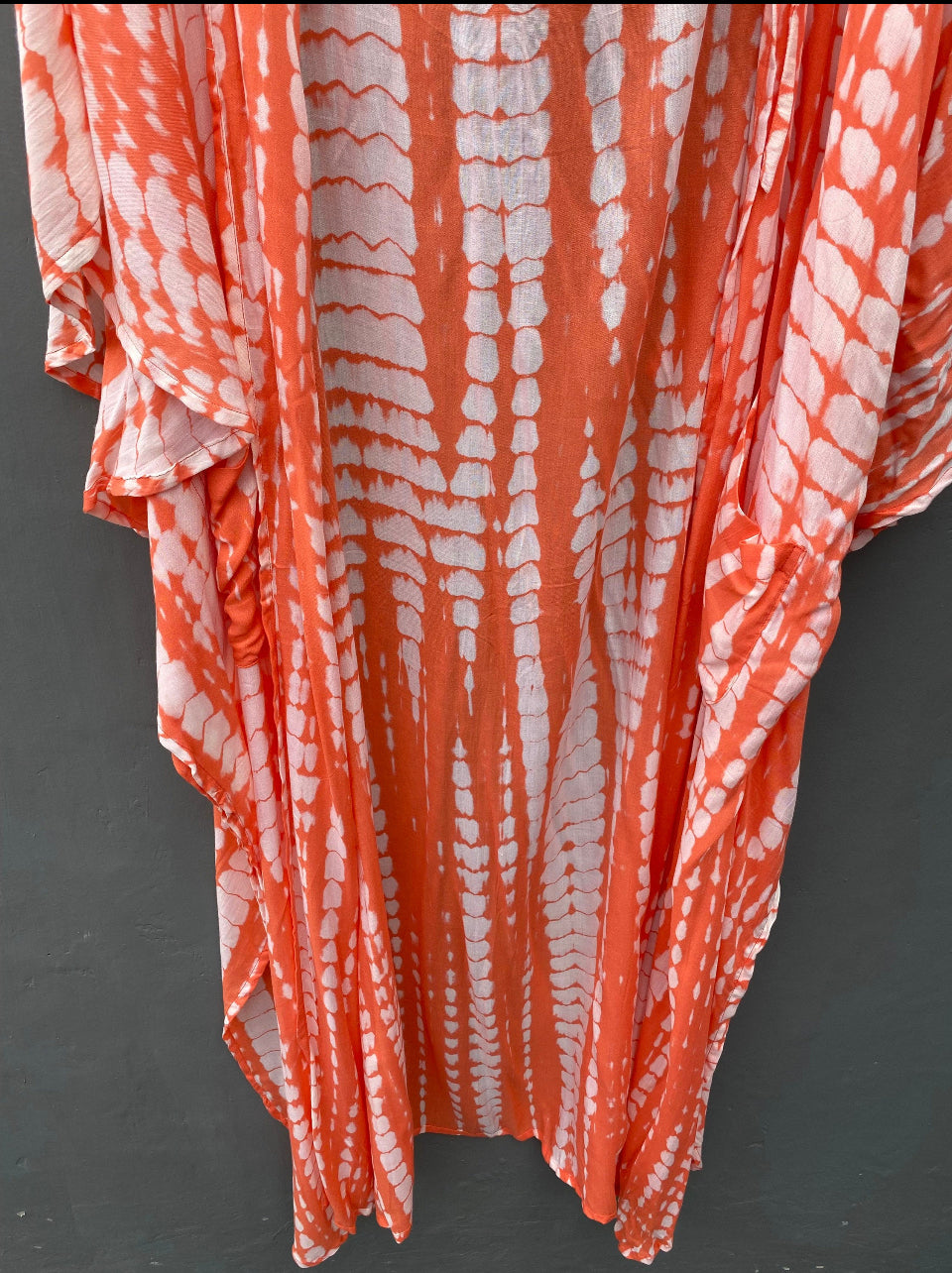 This hooded poncho is made out from soft and light rayon . You can also wrap the sleeves around your neck and wear it as scarf or bathing suit cover up.