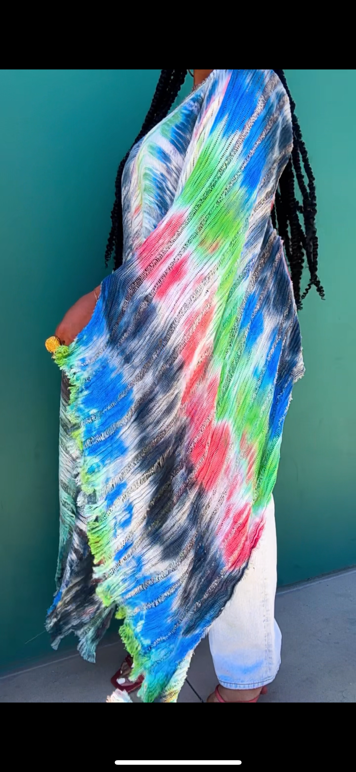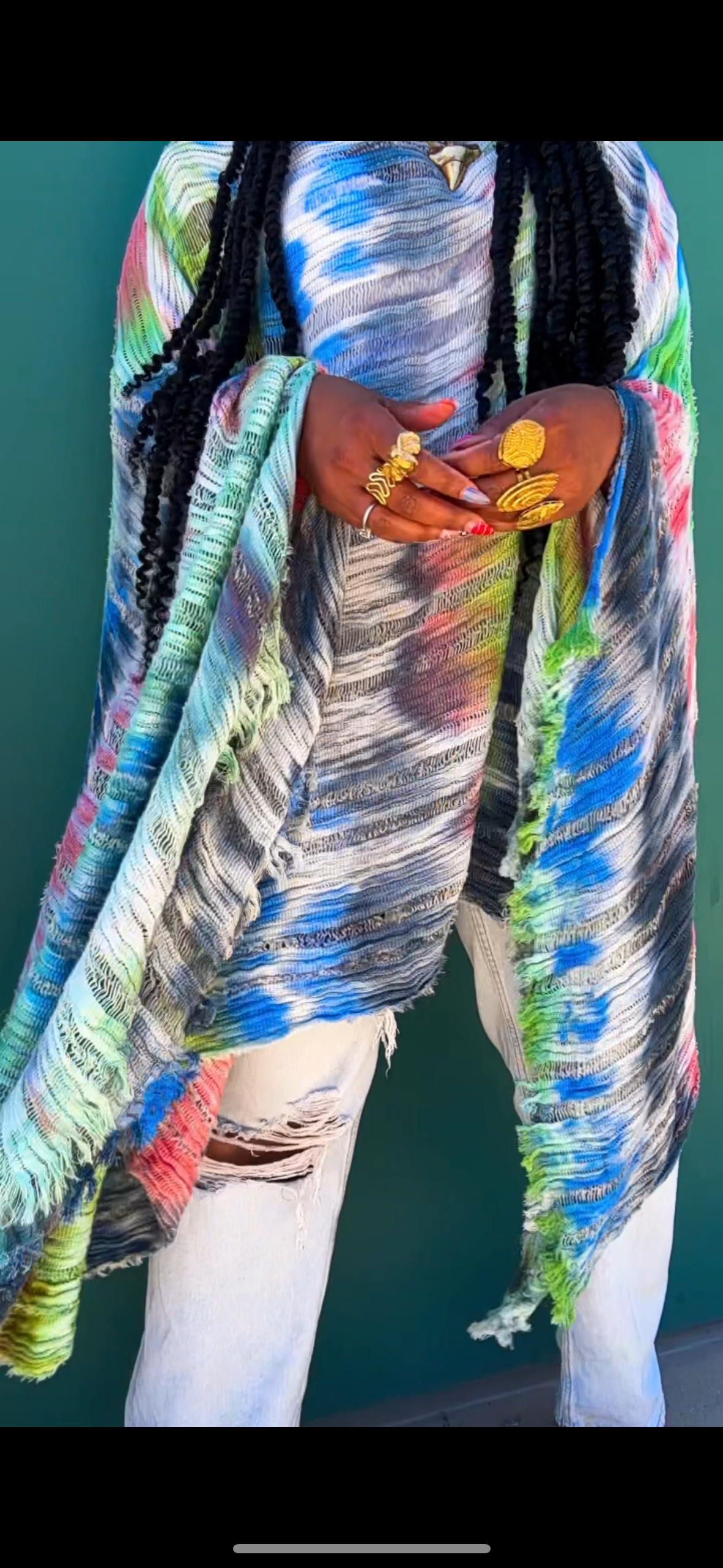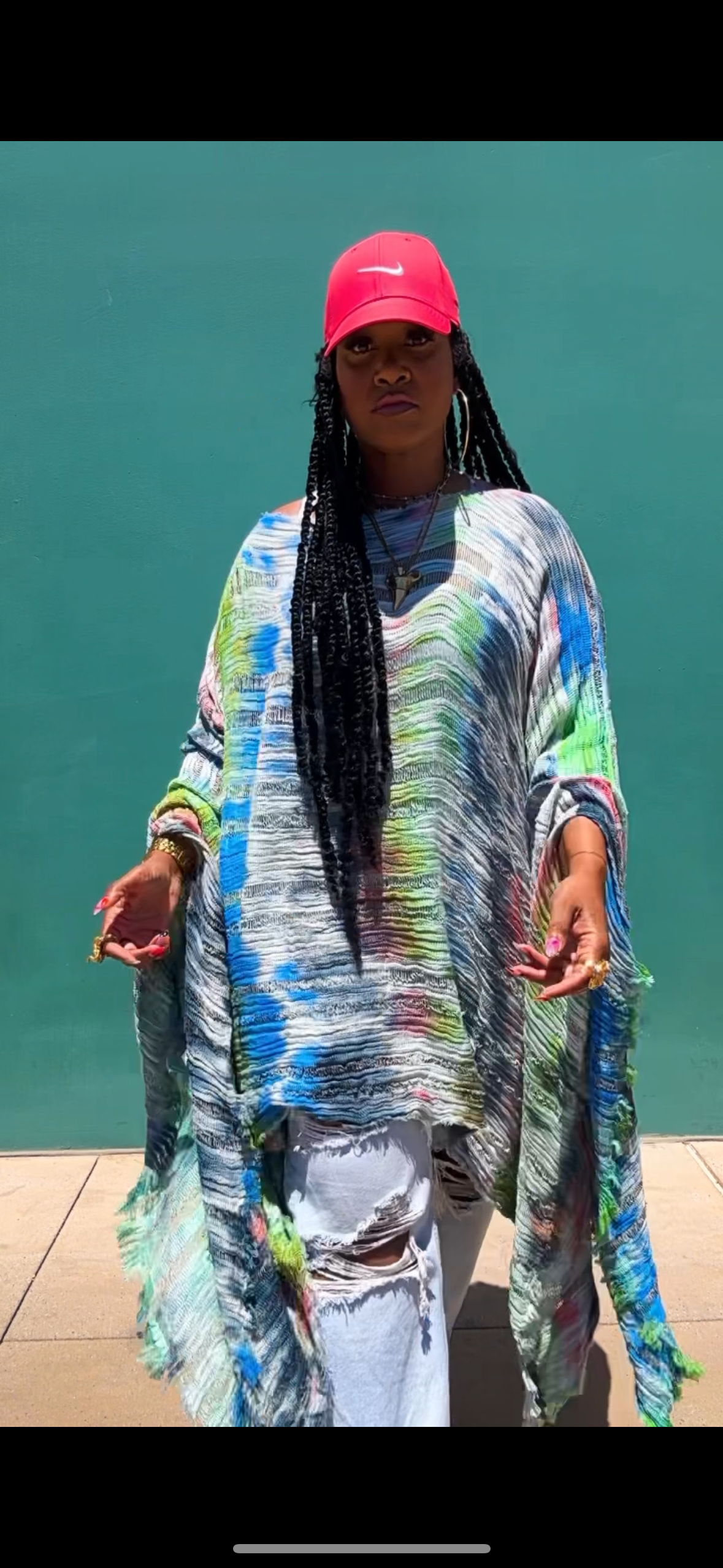 This Knitted hollow beauty is a Hand-dyed poncho/ dress . It can dressed for the day, styled as beachwear , or a Elegant Evening dress