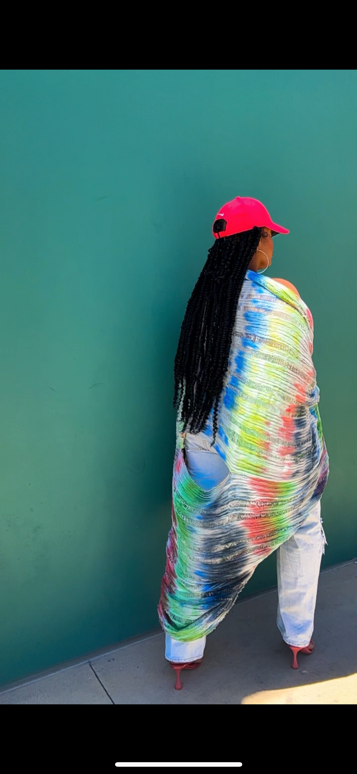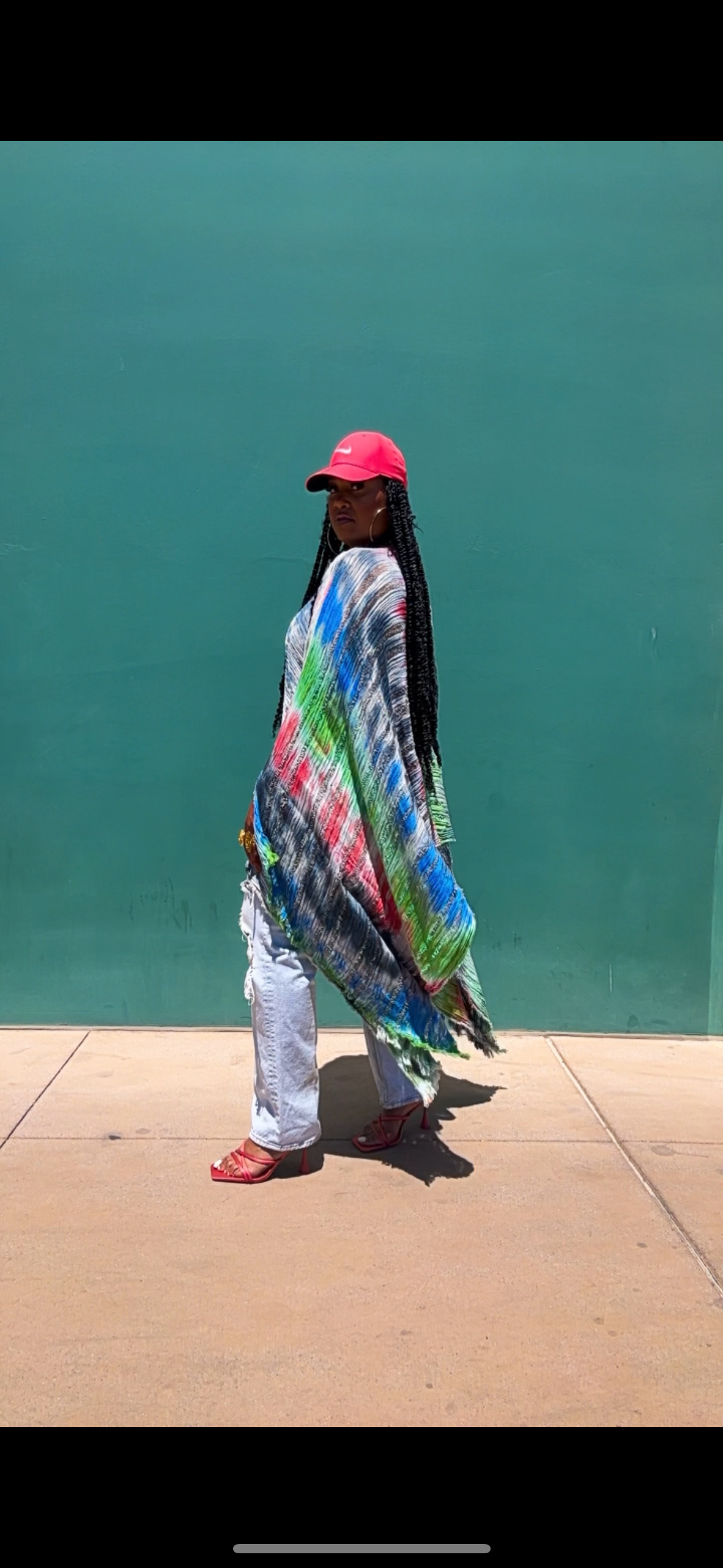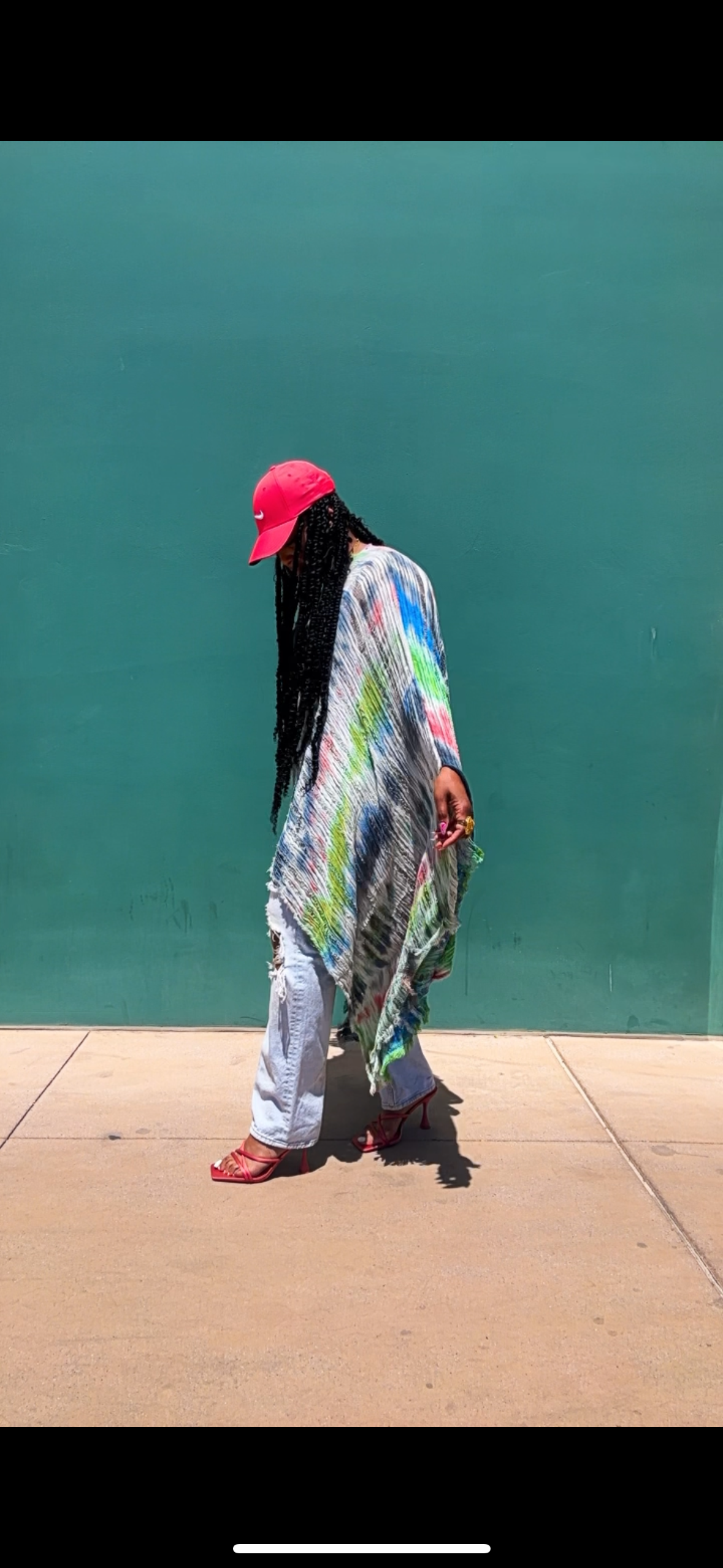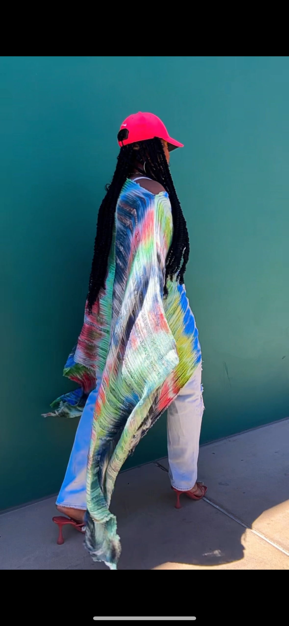 This Knitted hollow beauty is a Hand-dyed poncho/ dress . It can dressed for the day, styled as beachwear , or a Elegant Evening dress