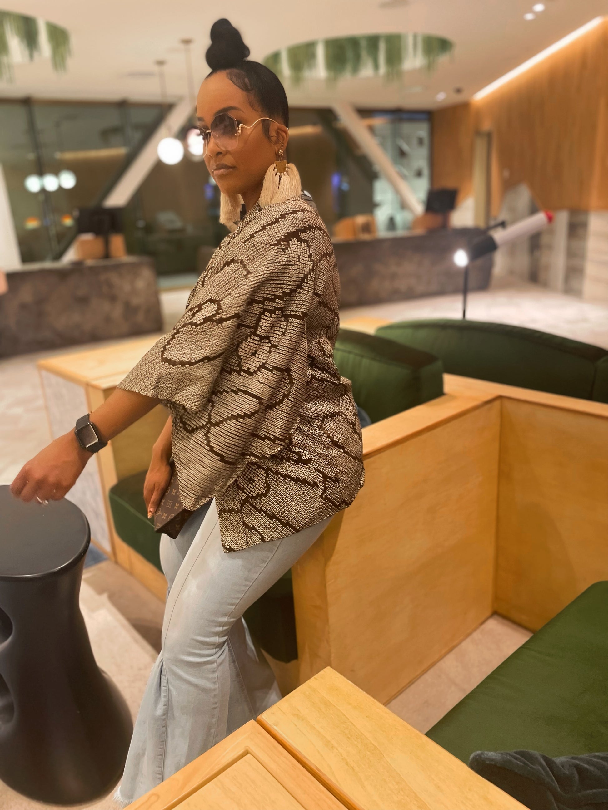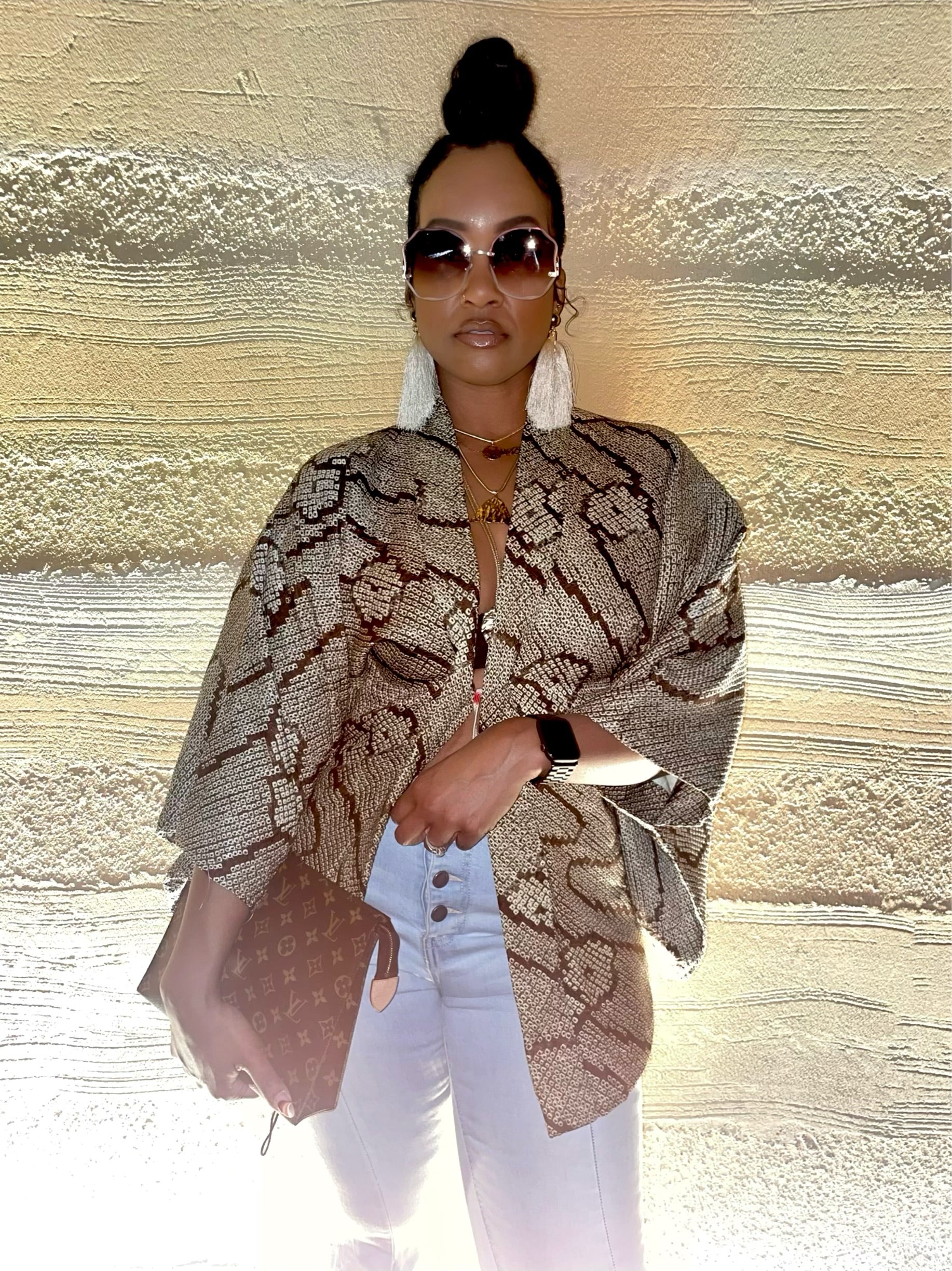 A beautiful finishing touch to any look , this beautiful brown kimono can be worn like a sexy too as well. The billowy silhouette and tribal print for a versatile must have .