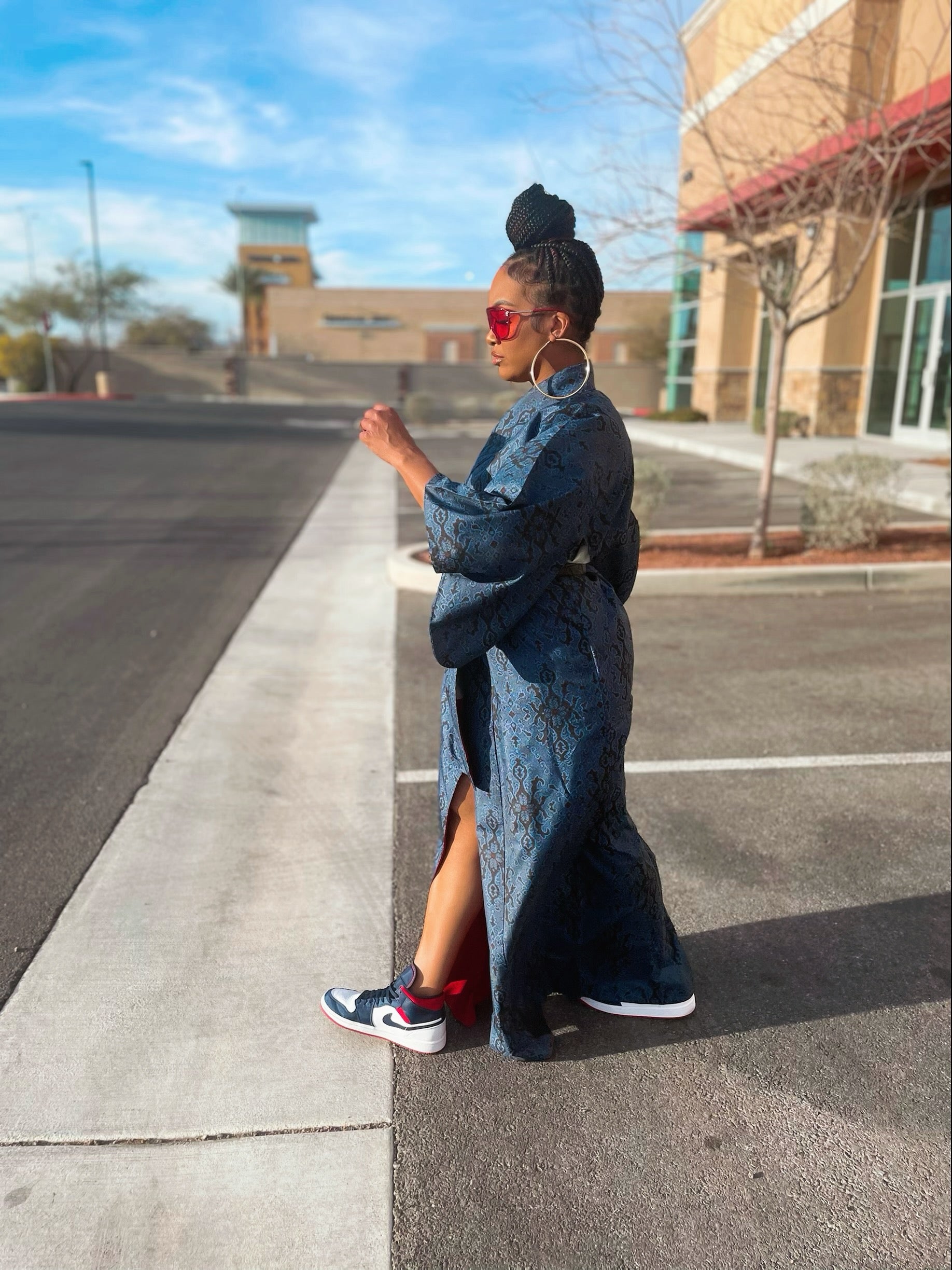 Featuring a colorful statement of navy with red interior This is a maxi Kimono with shapeless silhouette. If you love a navy you will love this beauty.