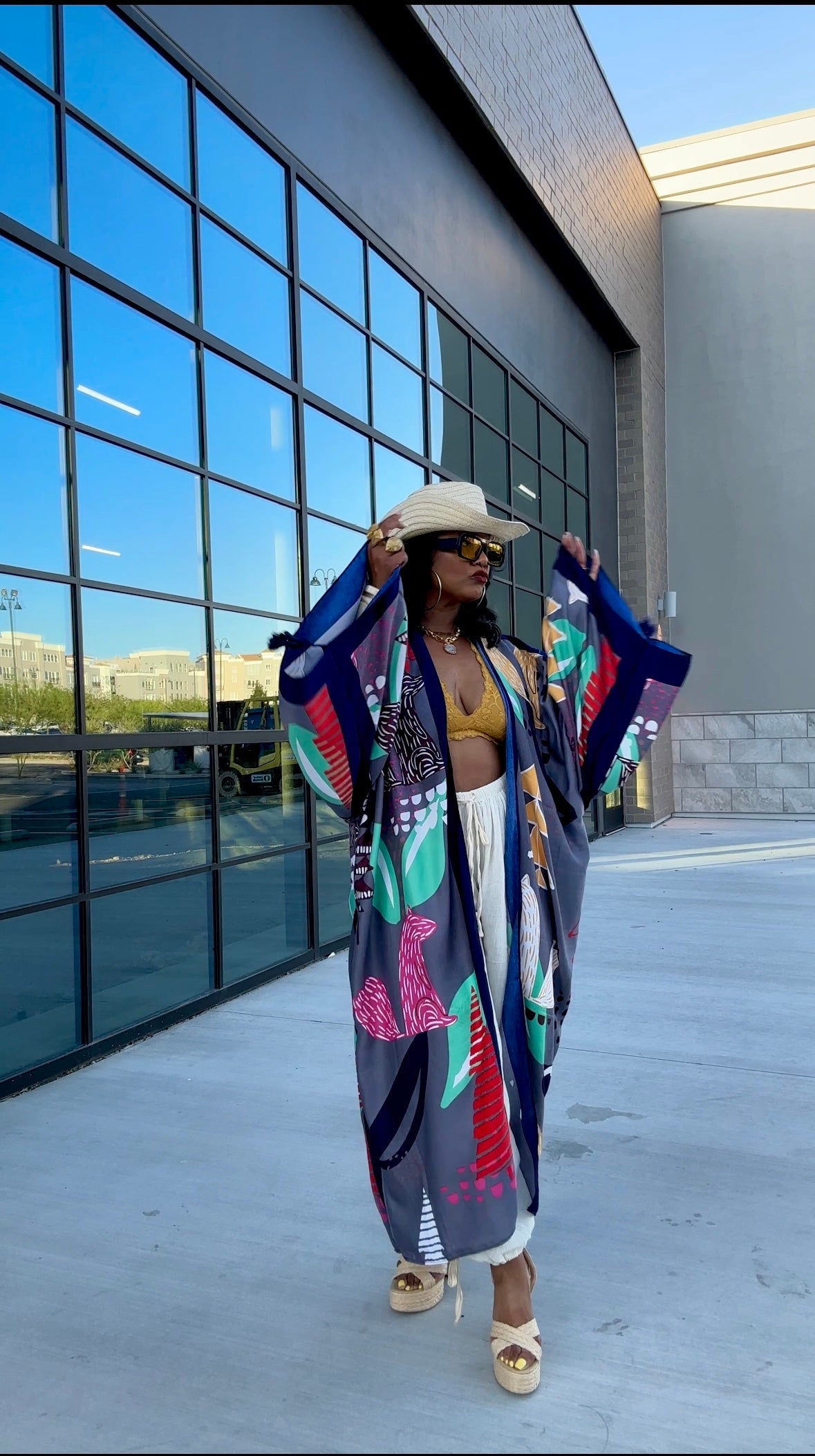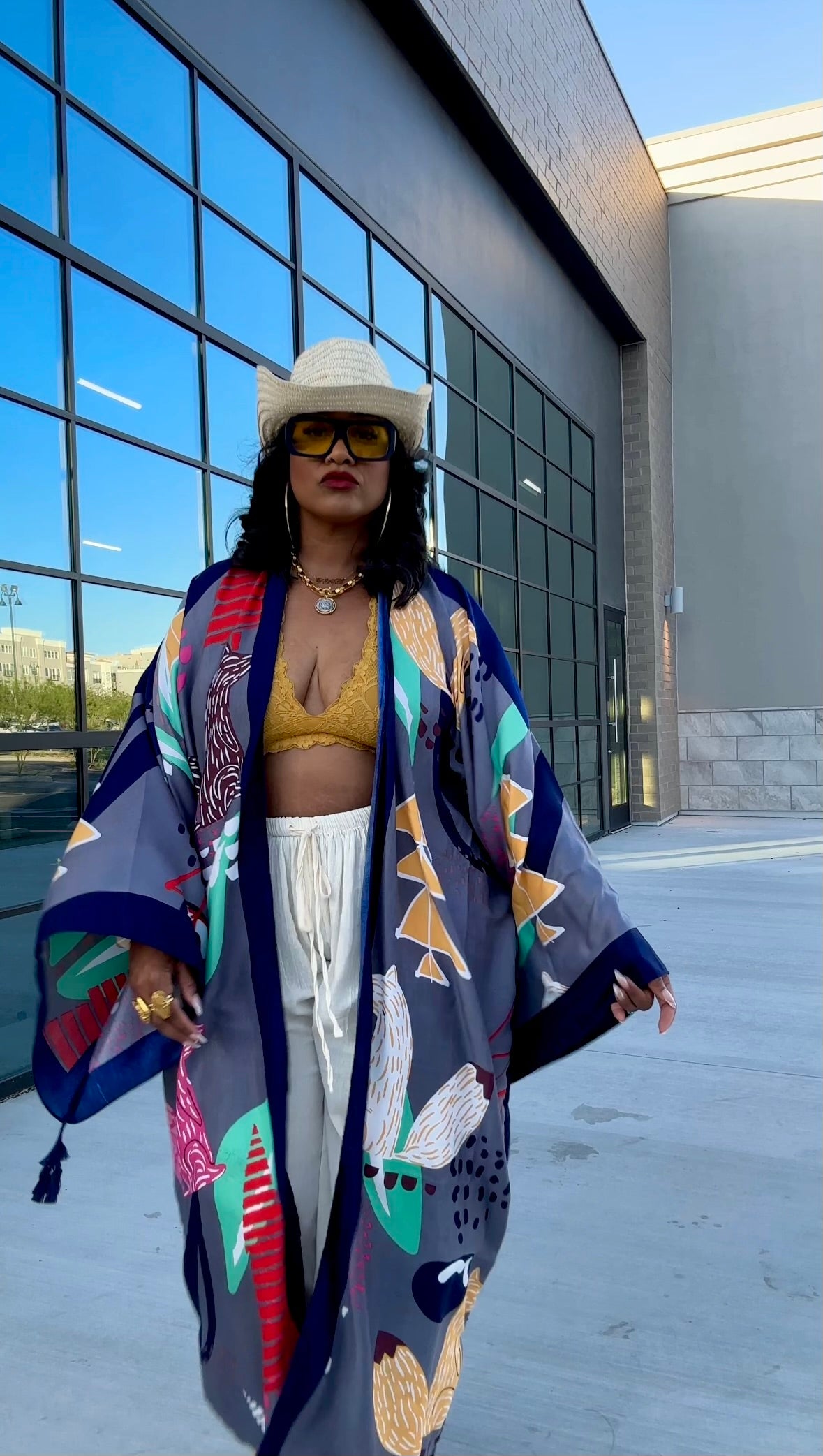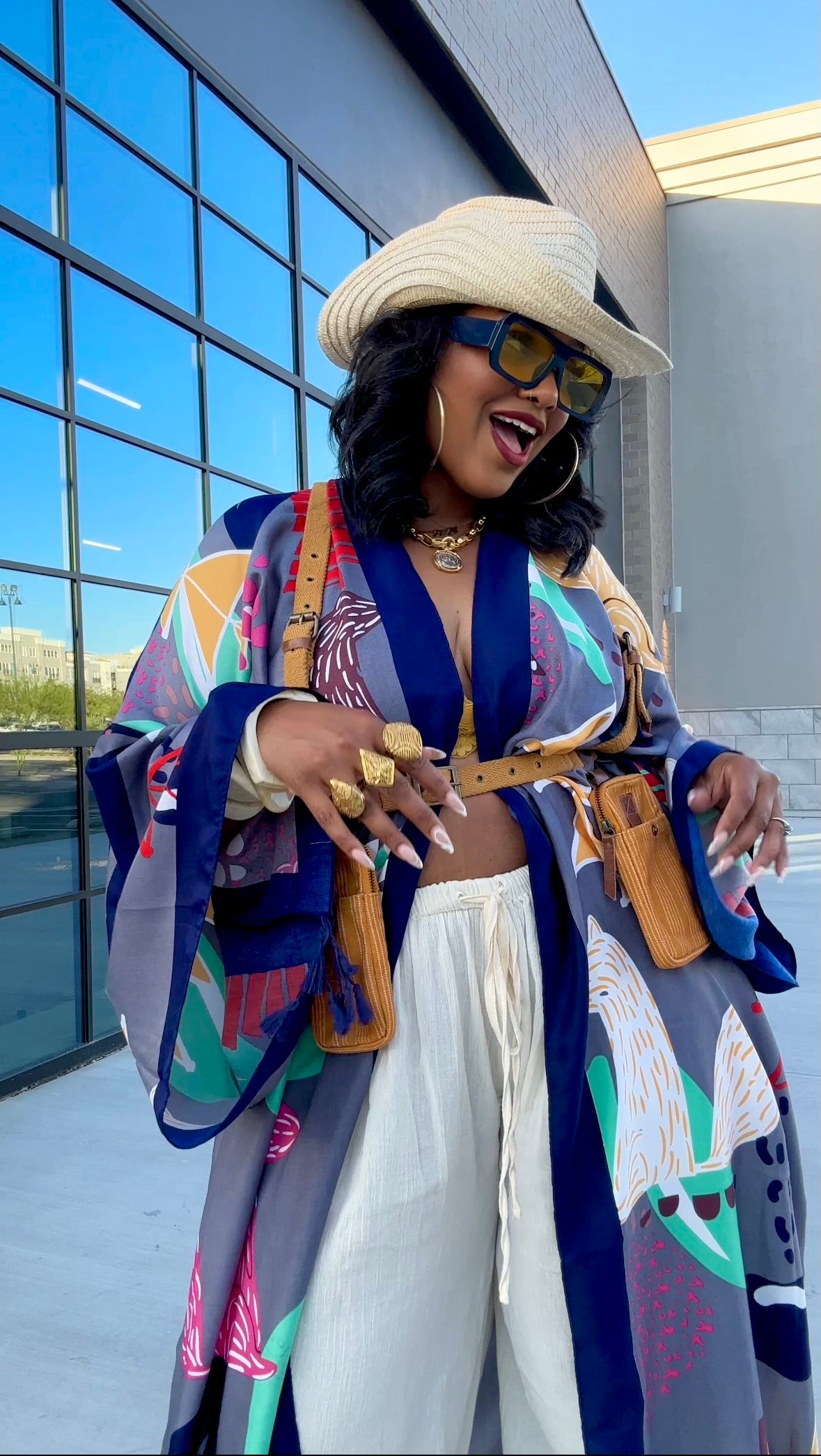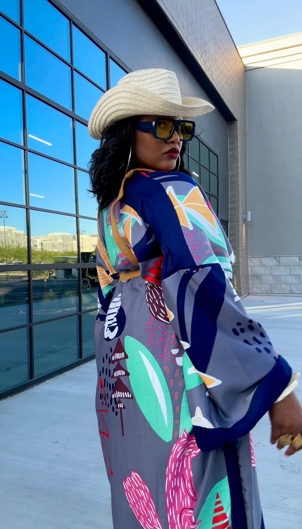 Wilder is a Multi Print Robe is a super lightweight, open-front layer made from breathable cotton. Designed with distinct prints throughout, including trees and squirrels 🐿️. It offers a bold, mixed-pattern look that’s both relaxed and eye-catching. With no closure and a loose fit, this robe is perfect for layering over swimwear, lounging sets, or casual outfits. Whether at home or on vacation, it’s an easy piece to throw on and go.